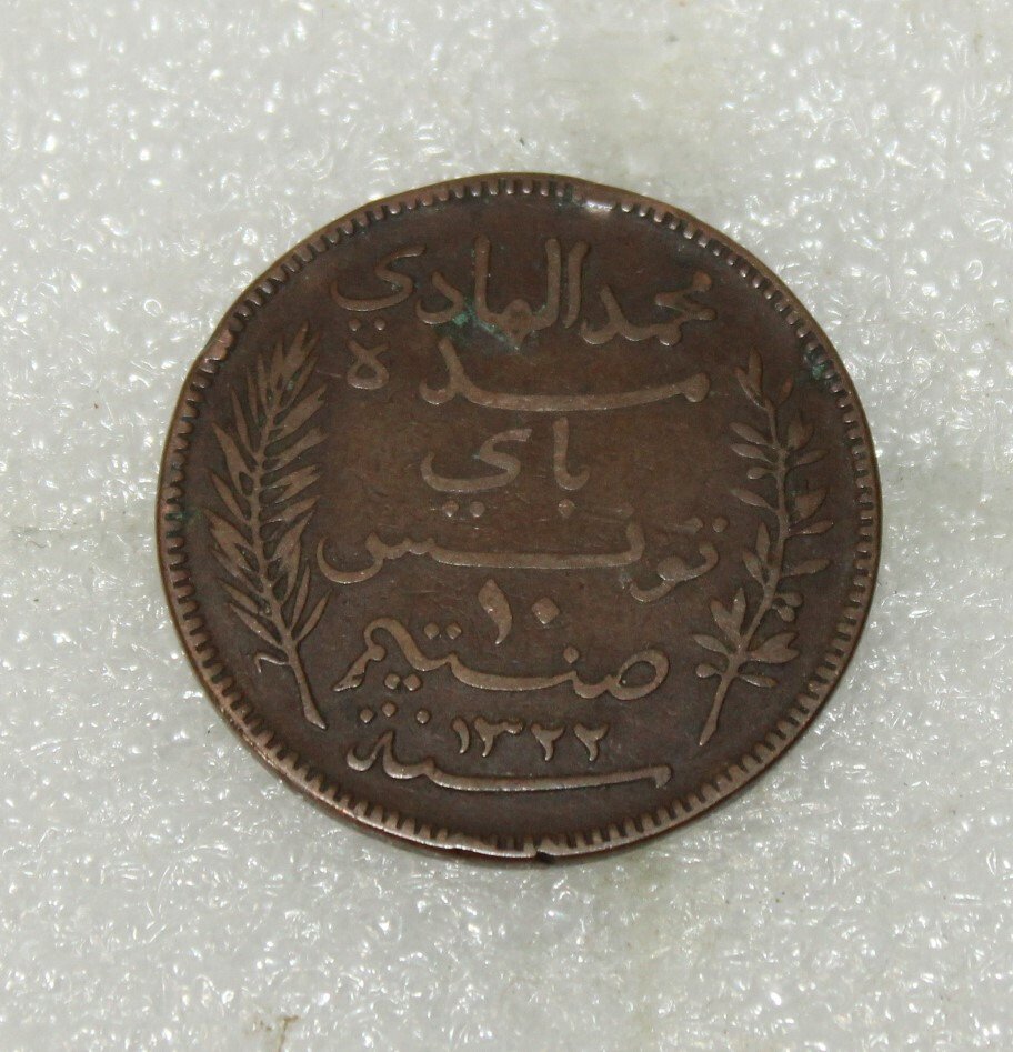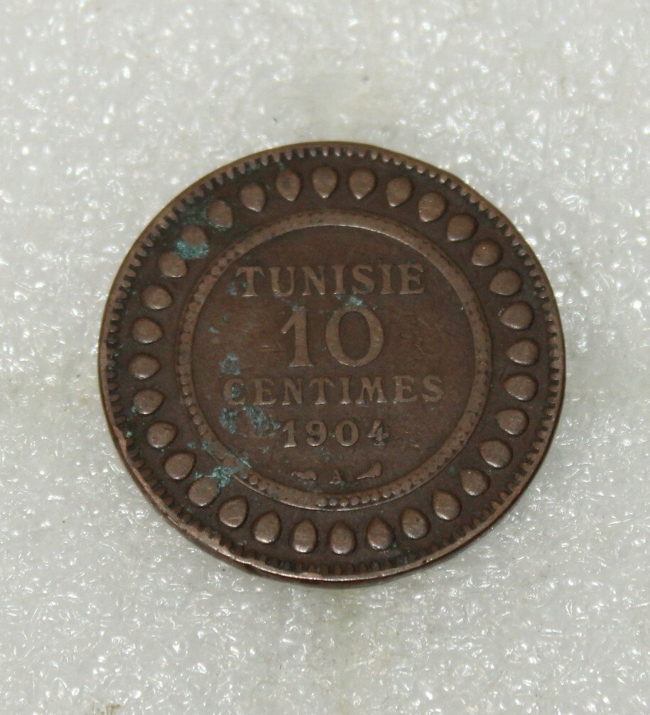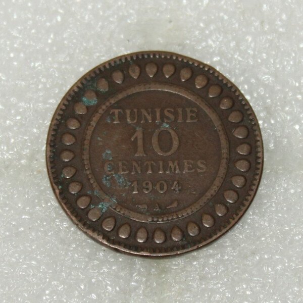 Pièce de 10 centimes tunisien sous protectorat français, fabrication en bronze datée 1904.