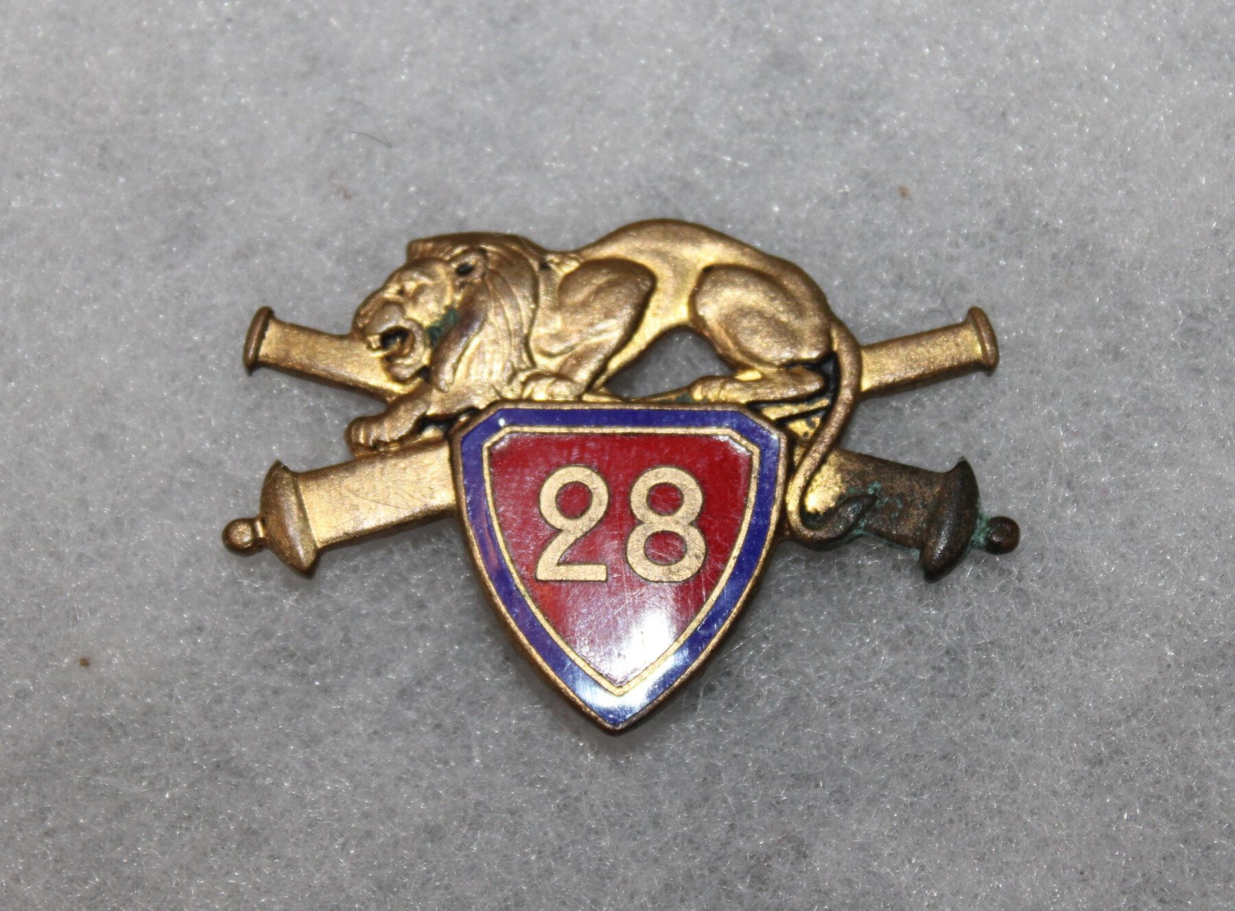 Insigne du 28e régiment d'artillerie, fabrication dos guilloché Drago Paris. G1148.