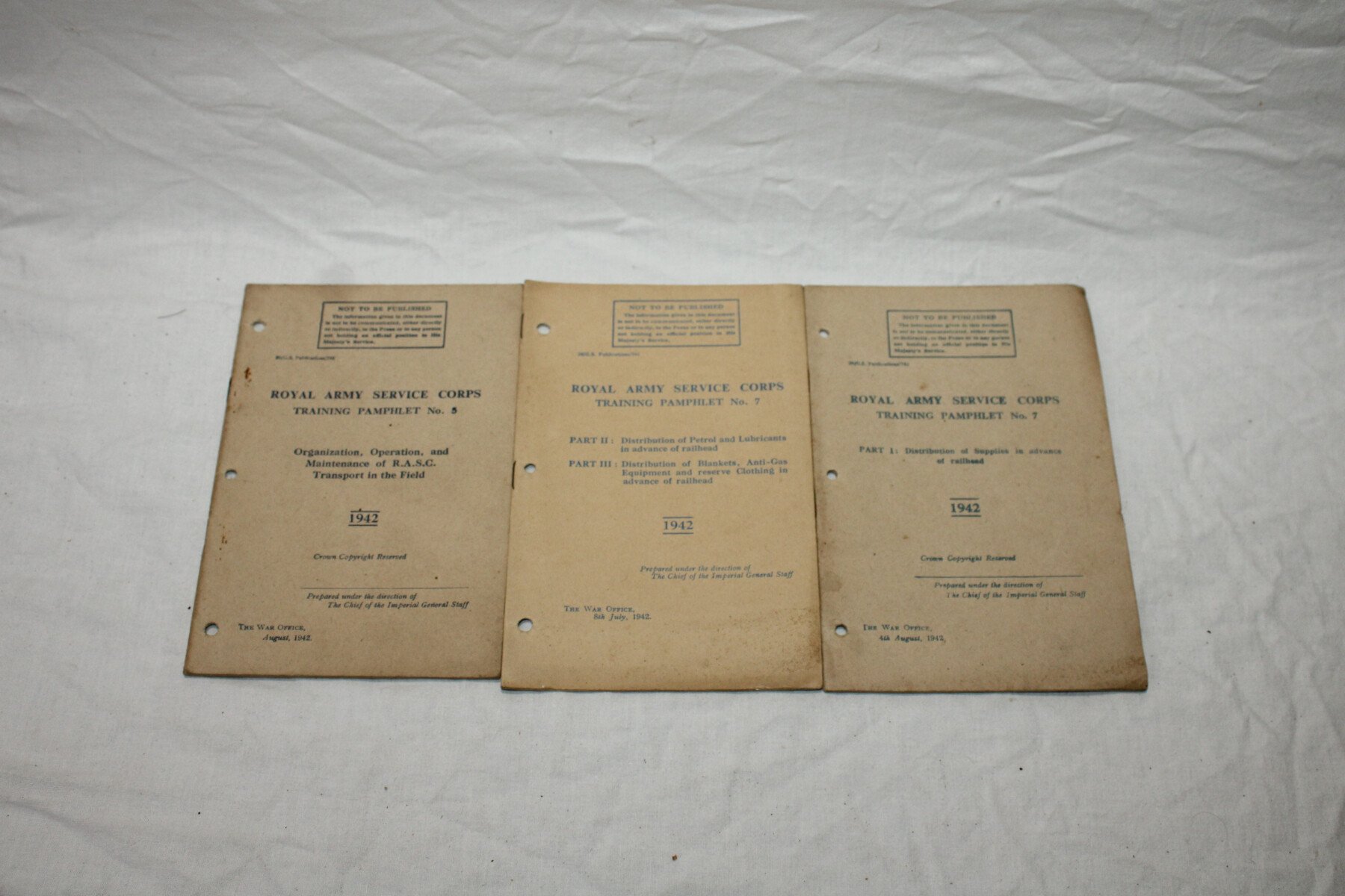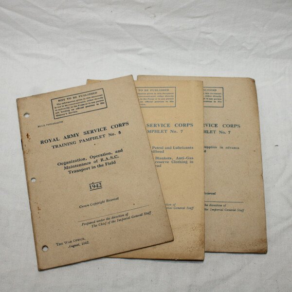 Ensemble de 3 manuels du Royal Army Service Corps. Training pamphlet N°5, N°7 part I et N°7 part II et III. Tous sont daté 1942.