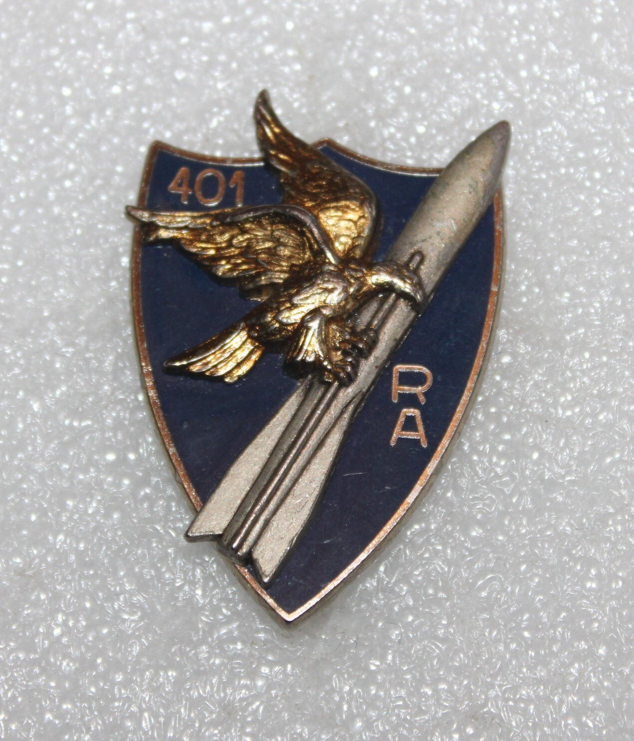 INsigne du 401e régiment d'artillerie , fabrication Delsart.