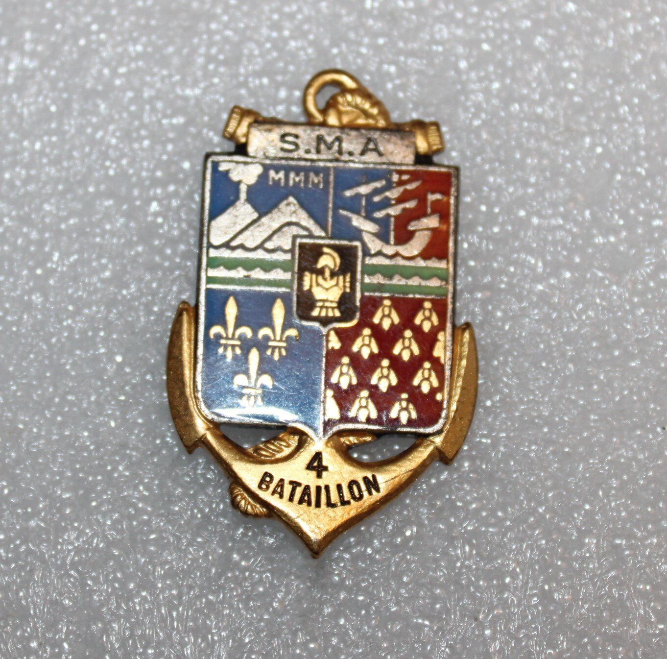 Insigne du 4e bataillon du service militaire adapté de la réunion. Fabrication Drago Paris, dos guilloché. G 2098.