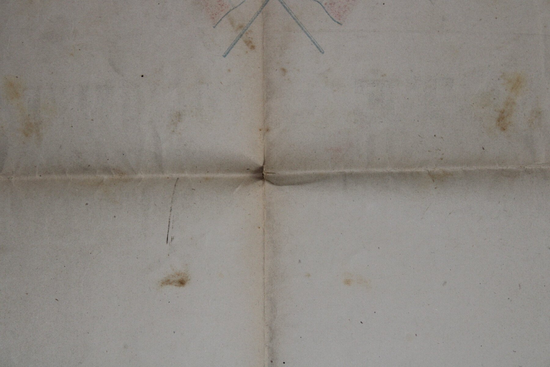 Grande affiche de 1918 (dimension 91 cm X 64 cm) arrêté sur les mesures de polices sur le territoire d'Alsace/Lorraine suite à la réoccupation Française sur ce territoire annexé. Bilingue(Français /Allemand),complète hormis quelques légers défauts suite au pliage. Datée du 17 novembre 1918. Peu commun à conserver et présenter dans un sous verre.