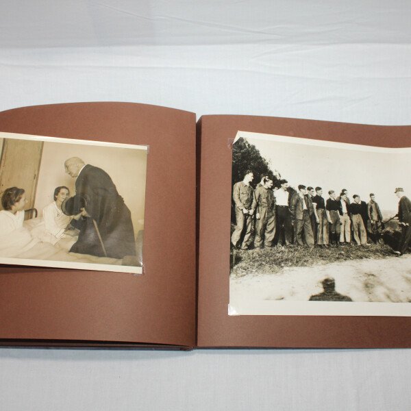 Album photo du maréchal Pétain en visite dans plusieurs endroit, comprenant 17 photos de différentes périodes.
