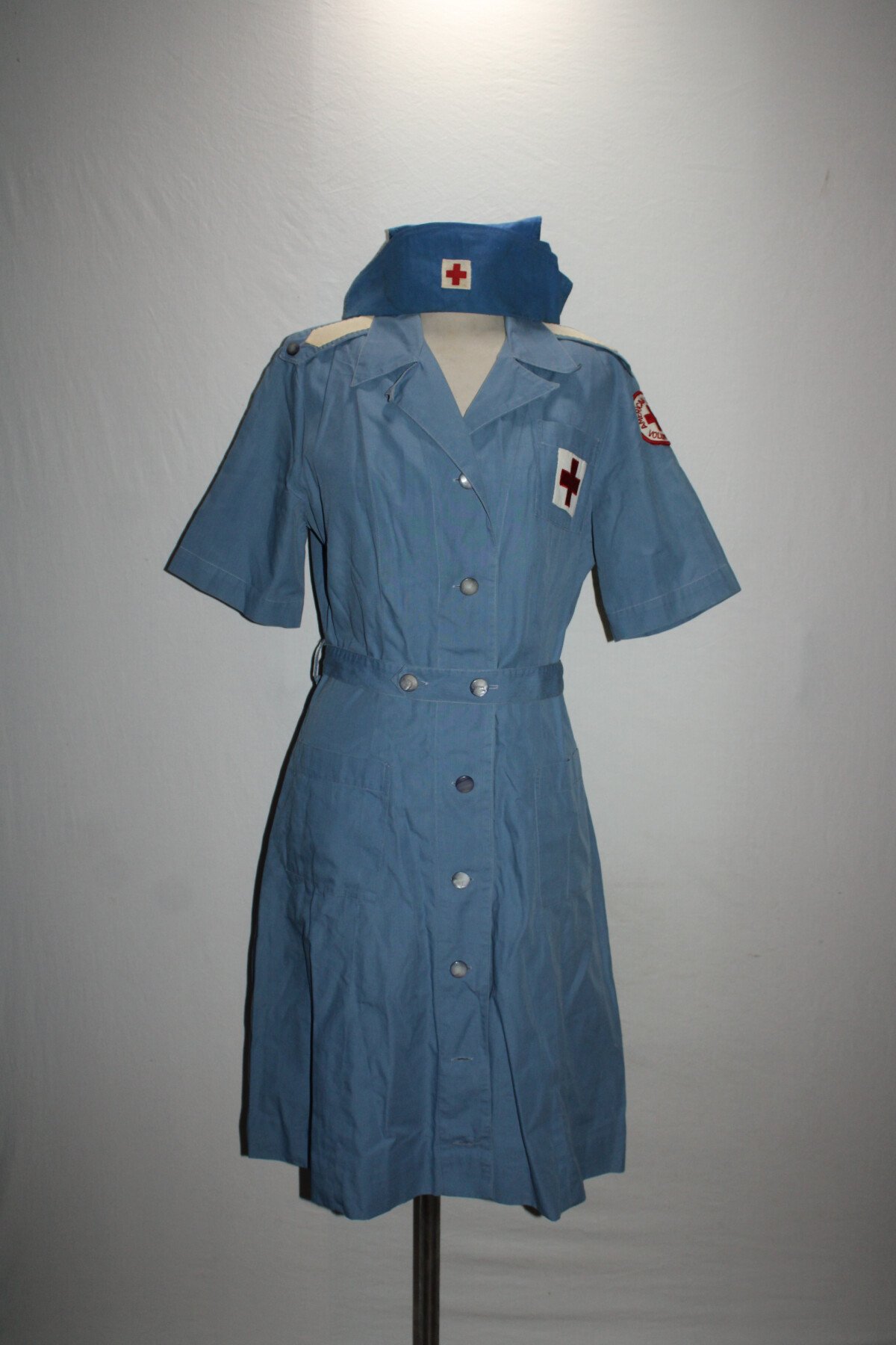 Bel ensemble d'une infirmière de l'american red cross, composé d'une tenue de service avec ses insignes et sa coiffe étiquette de taille us pour femme size 14 ( petite taille), sans défaut et en...