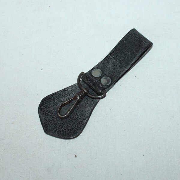 Mousqueton en cuir noir porte le bâton blanc de la circulation ou la gomme. Fabrication des années 40/50.