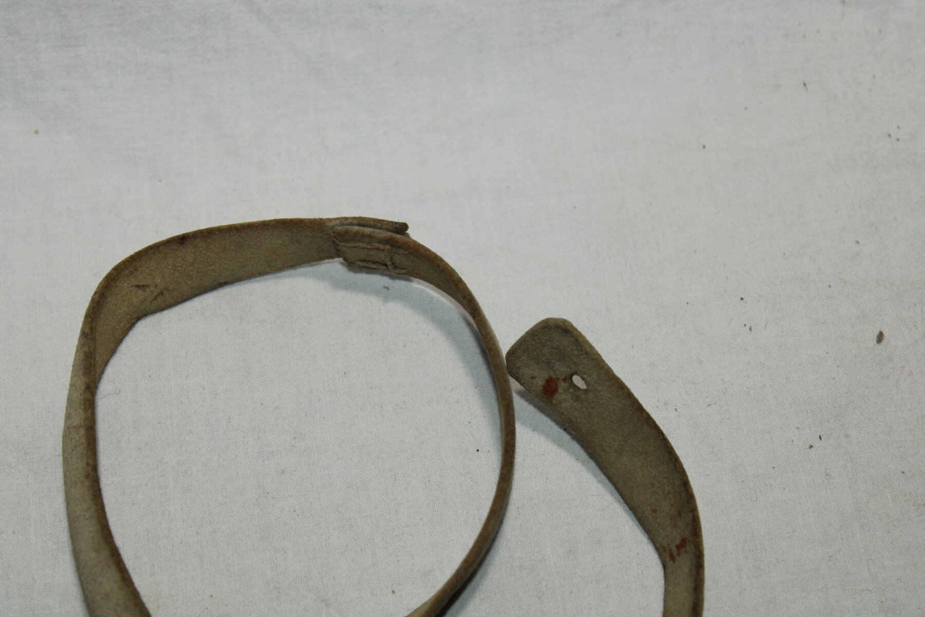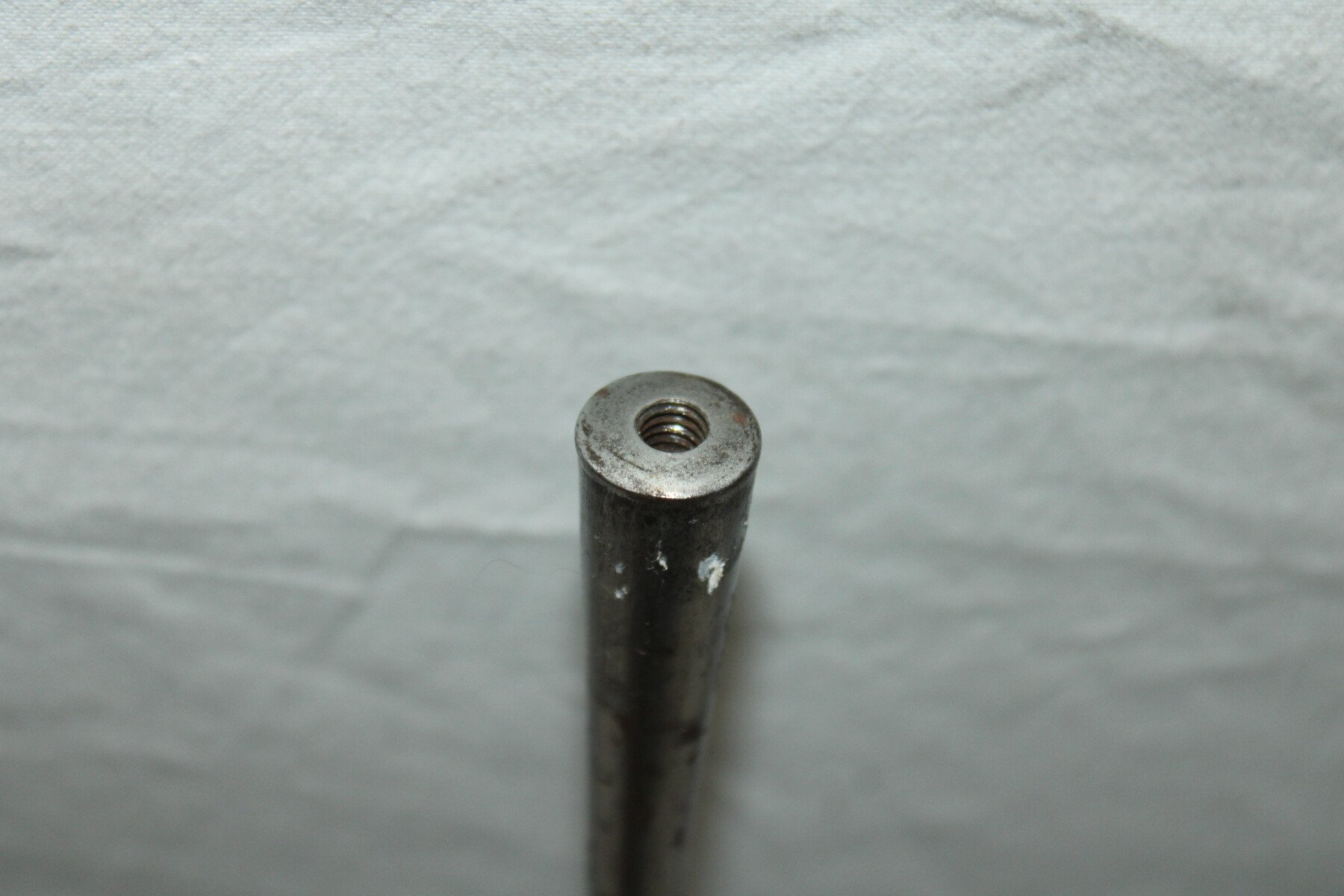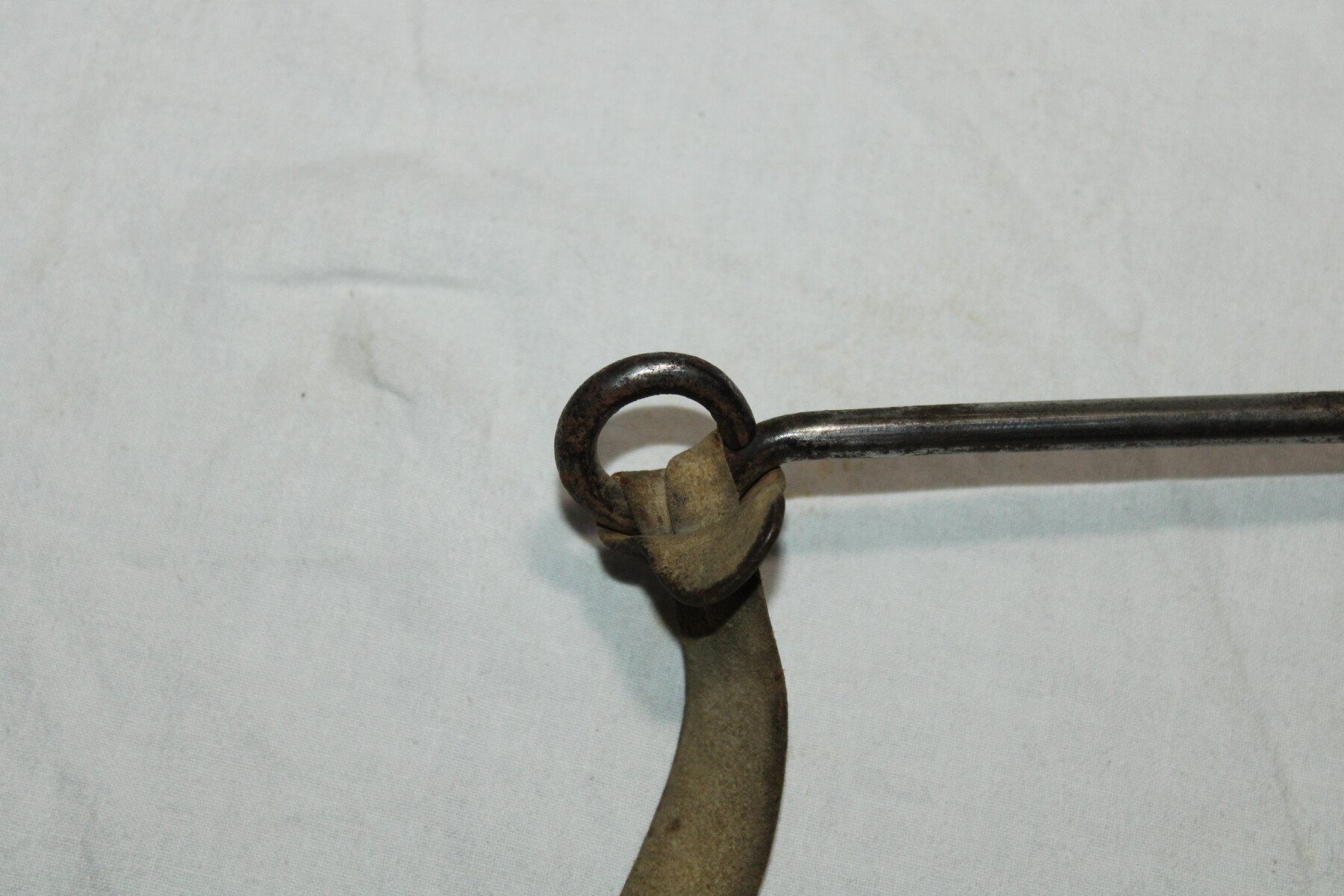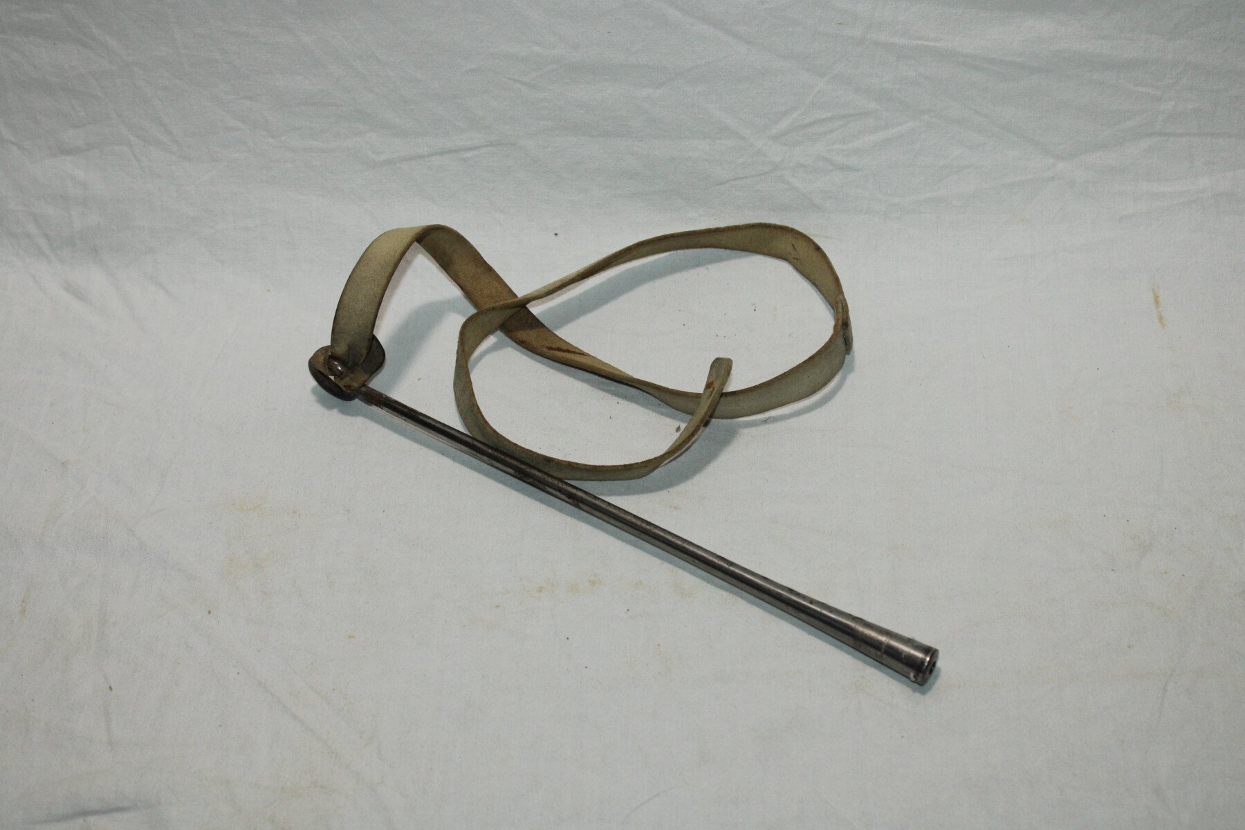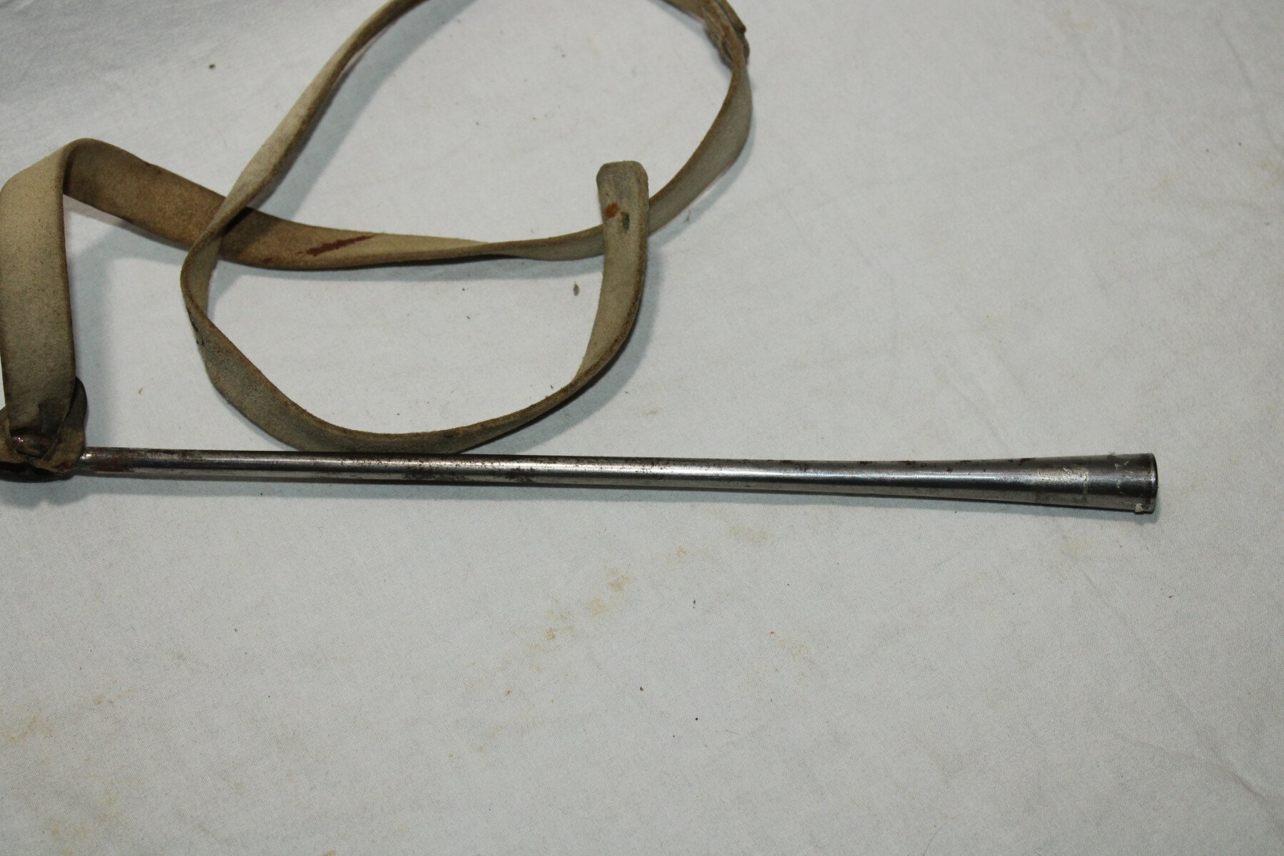 Baguette de nettoyage en métal. Longueur total 28.5cm, diamètre au plus large 15mm. Avec une lanière en cuir blanc.
