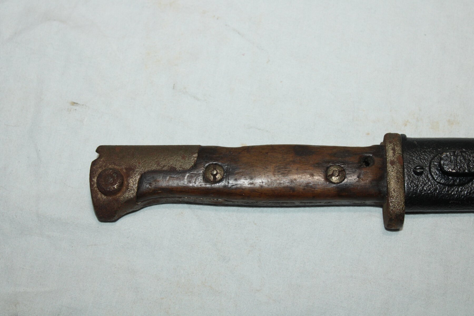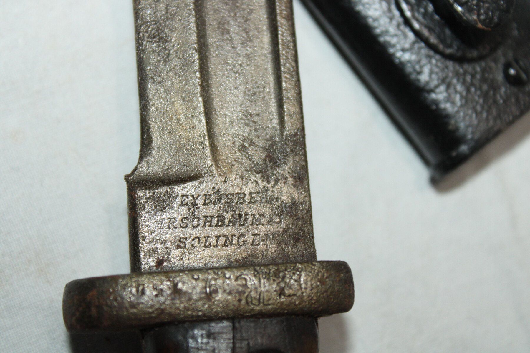 Baïonnette de fabrication Allemande pour le fusil Mauser 98A,Marquage partiellement visible du fabricant Weyersberg Kirschbaum Solingen .