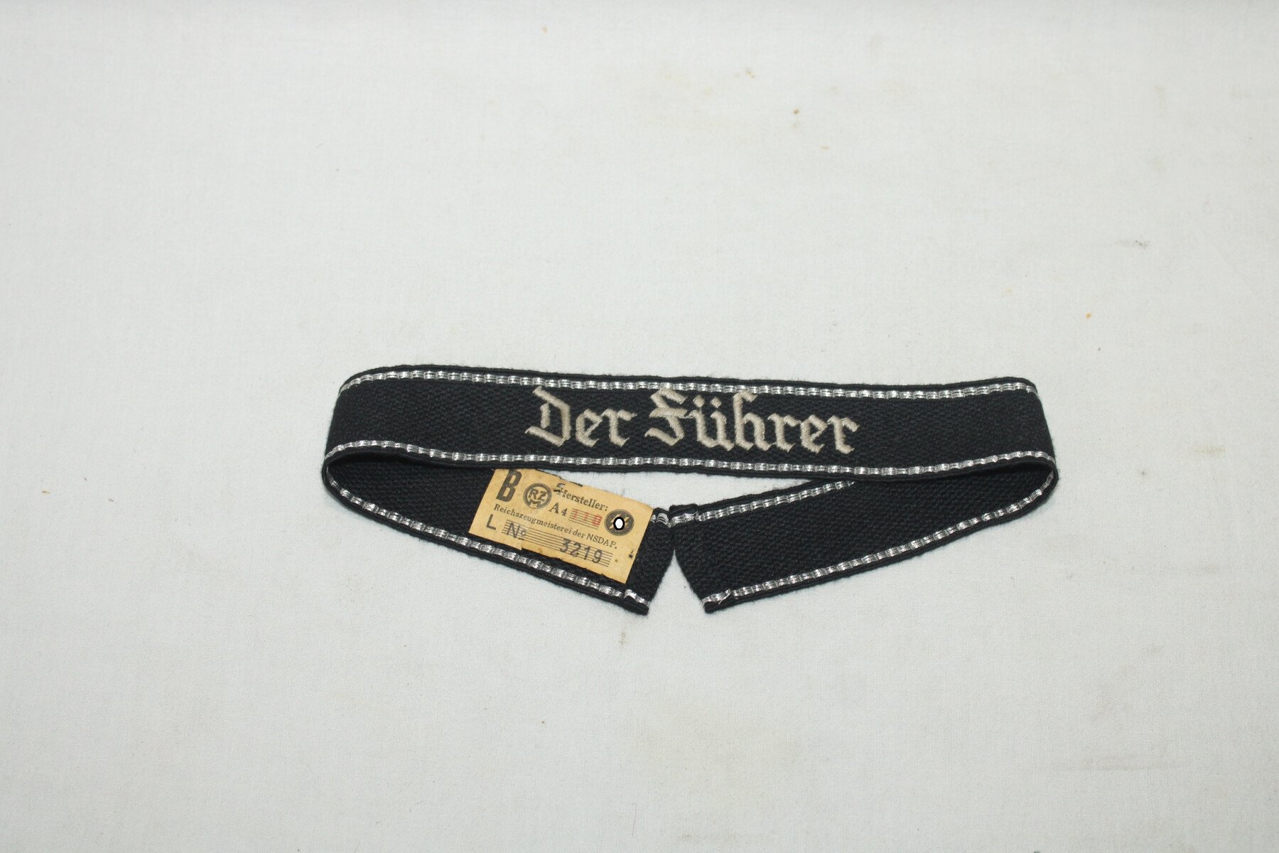 fabrication brodée de la bande bras officier du régiment der Führer de la 1e SS panzer division Leibstandarte. Version écrite en Gothique. Avec étique en papier du RZM.