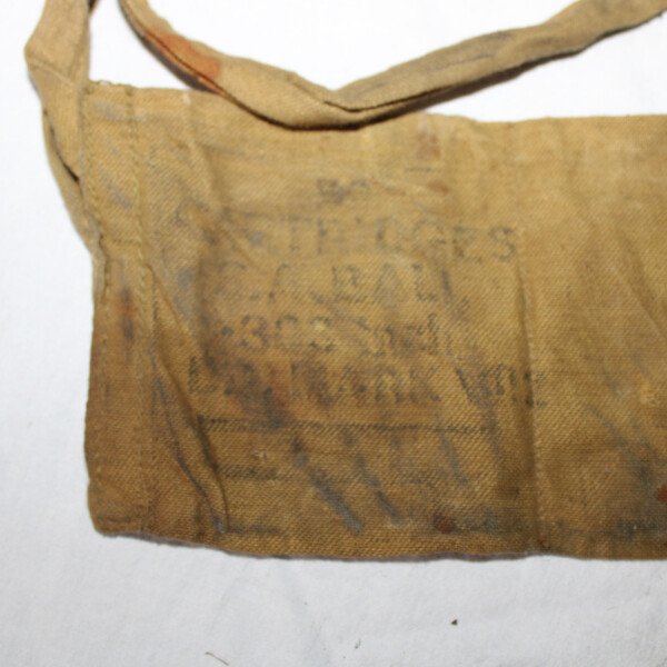 Cartouchière d'allégement de calibre 303, de fabrication canadien, état d'usage, plusieurs trous. Date illisible.