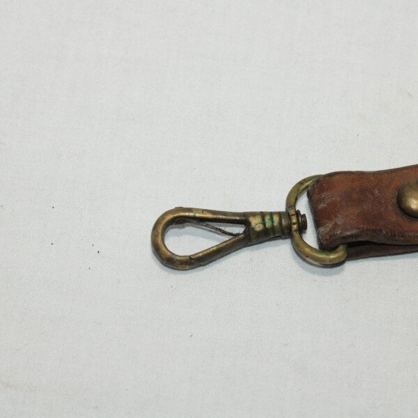 Bélière porte sabre en cuir brun. Cuir souple, mousqueton fonctionnel.