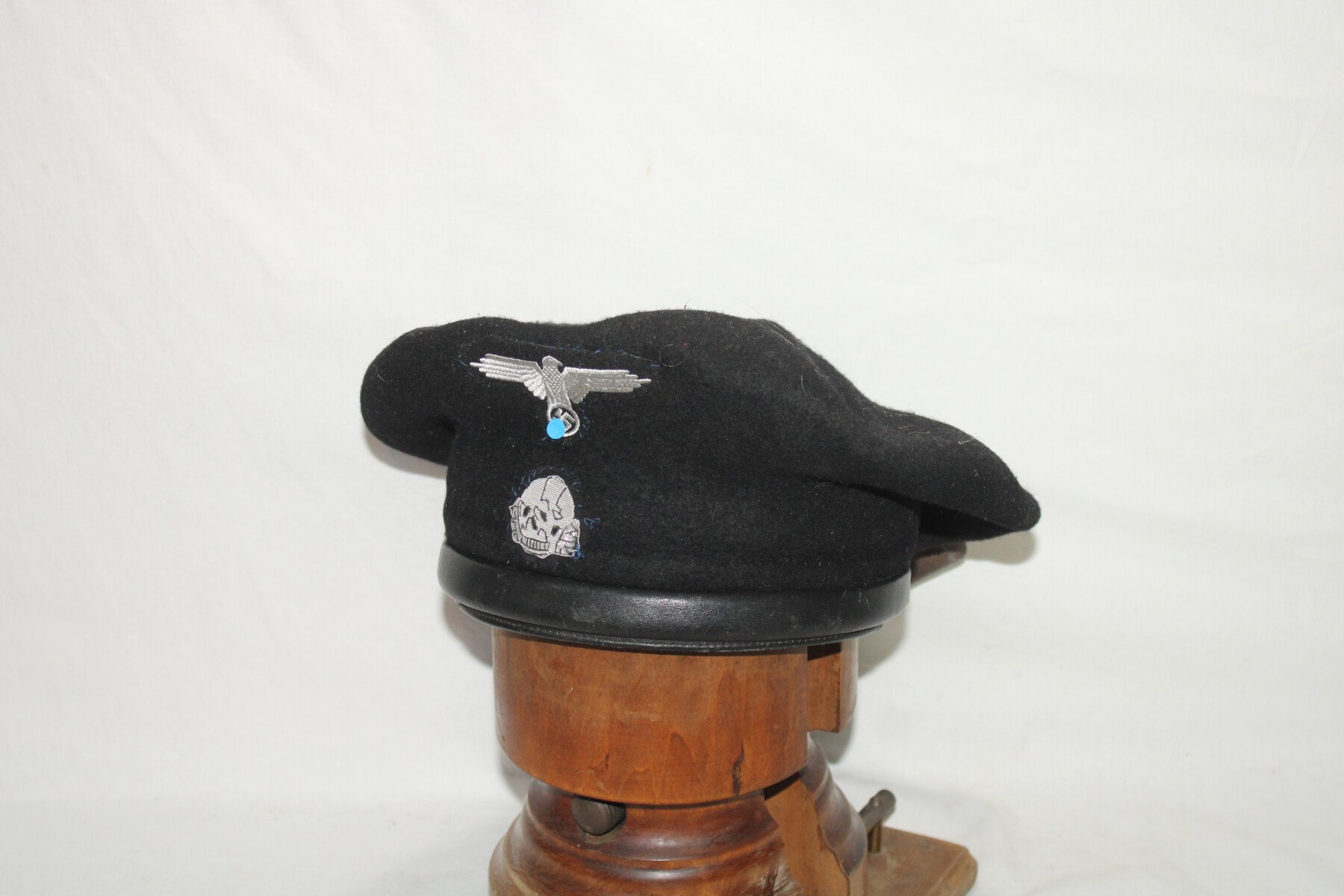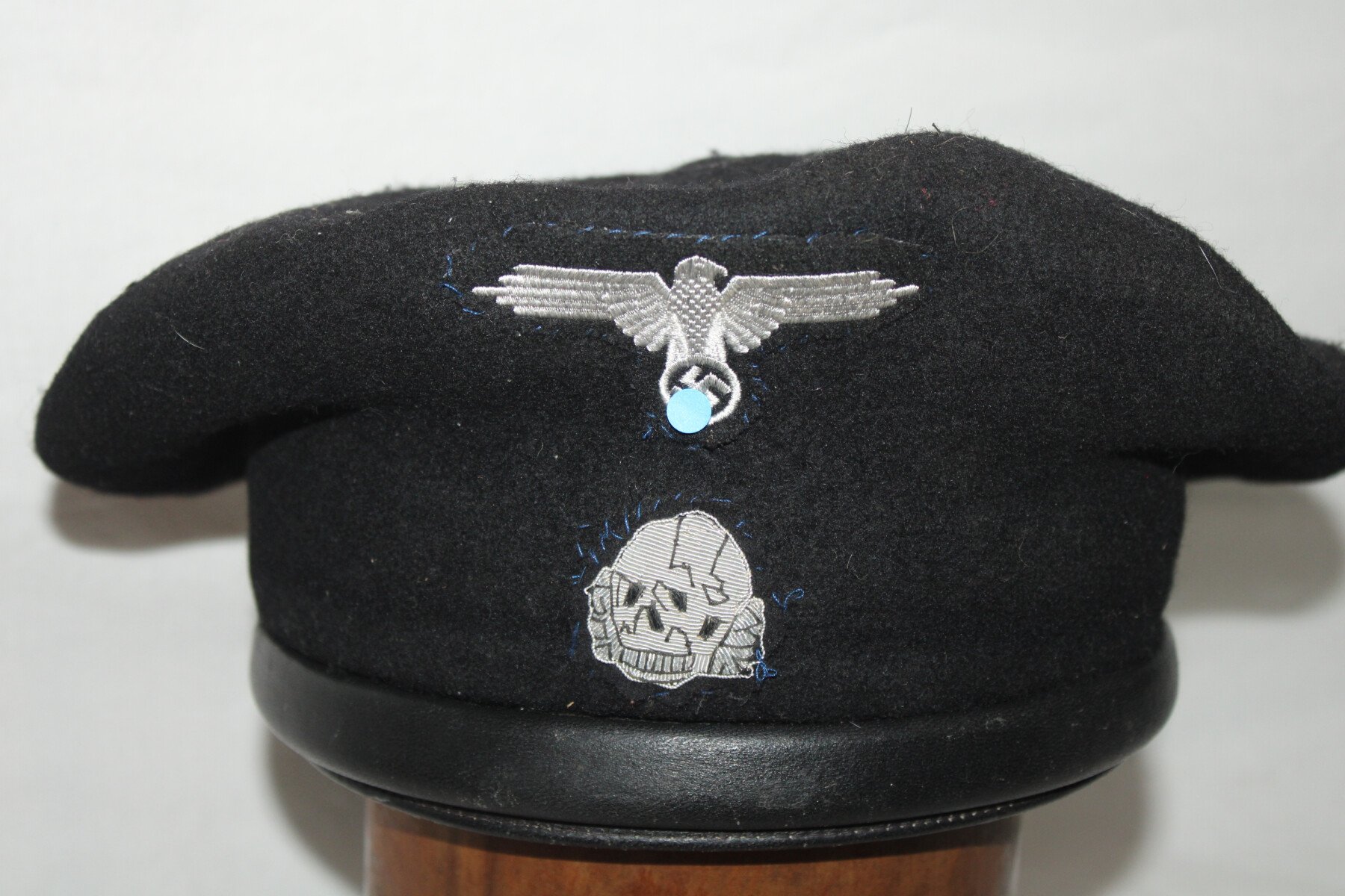 Béret noir de tankiste après-guerre monté en Panzer-SS. Taille 59.