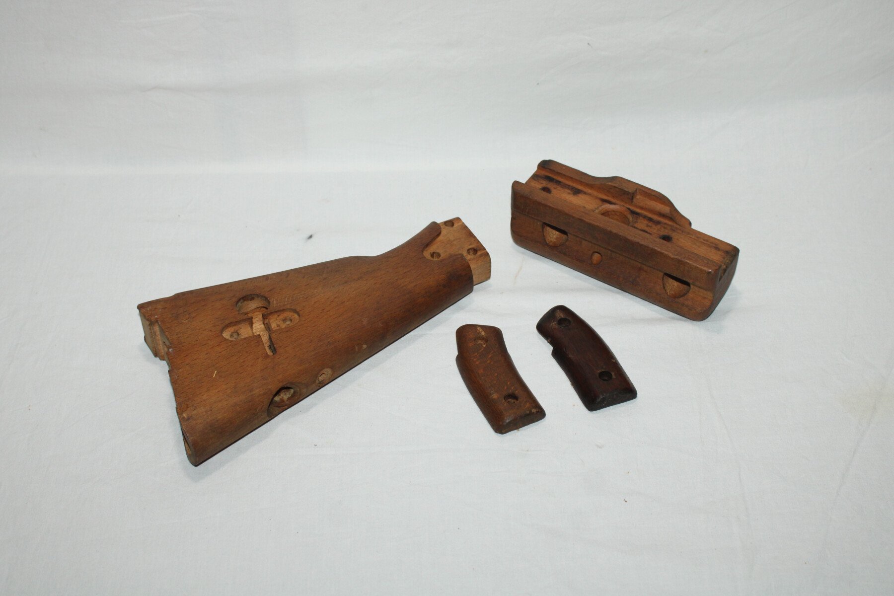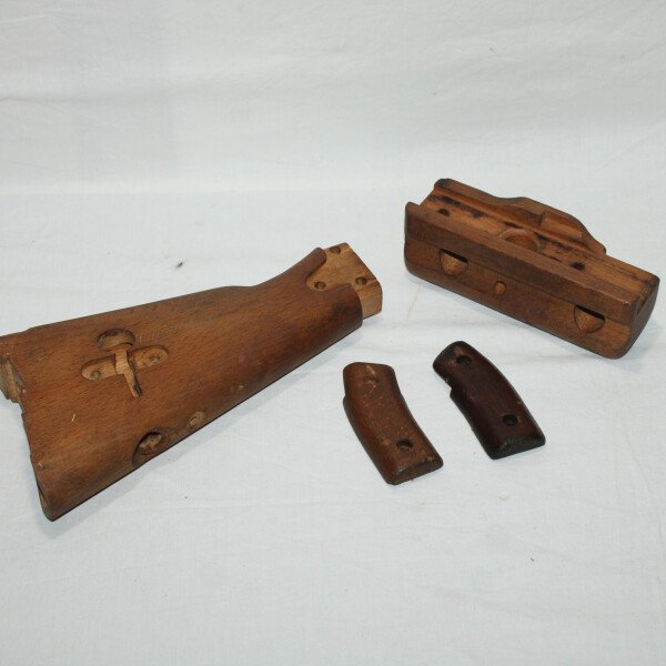 Kit bois pour fusil-mitrailleur 24/29 comprenant crosse, garde main et plaquettes. Une plaquette marqué MAS.