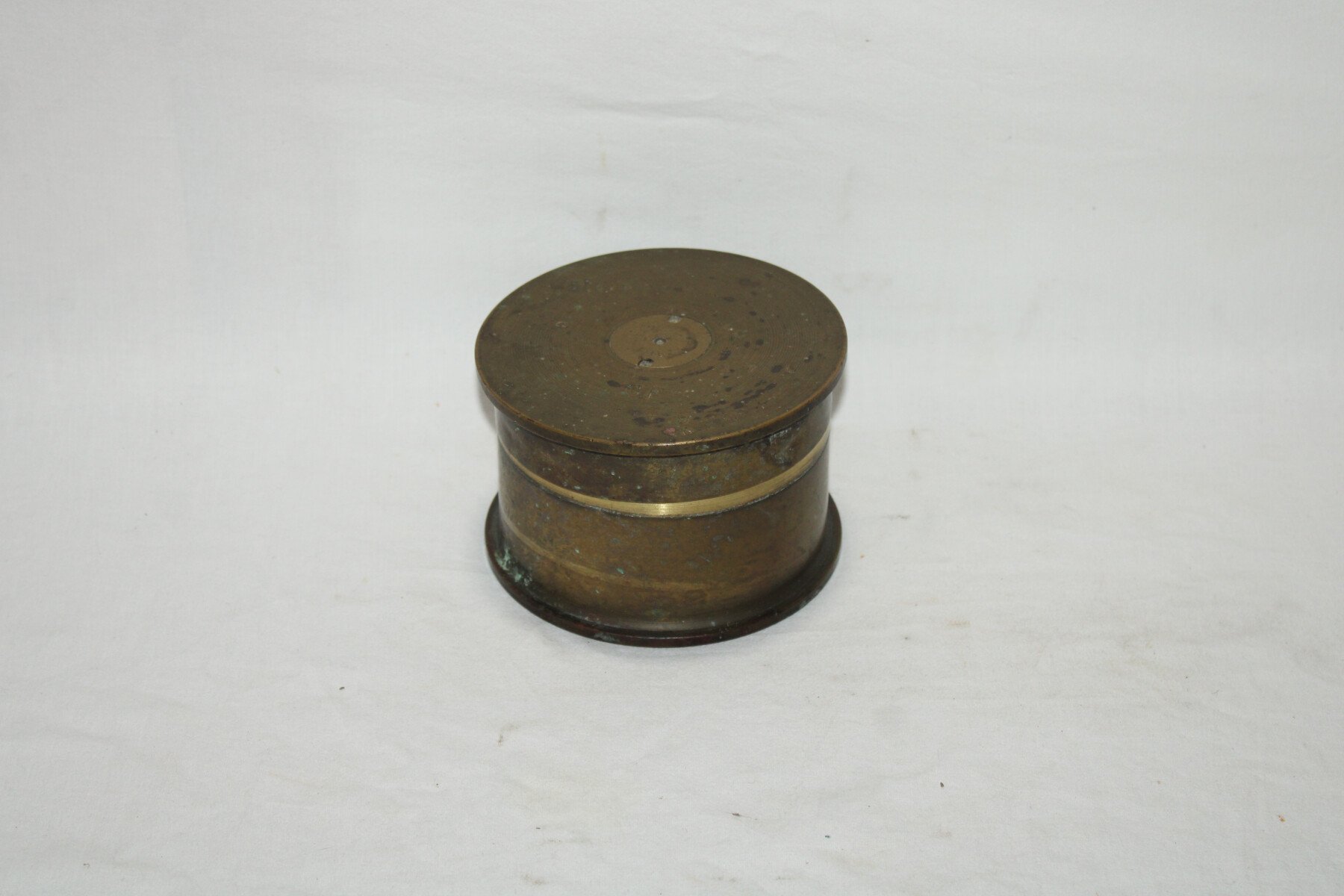 Boite a bijou ou autre réalisé avec deux douilles de 4.5 howitzer. Datées 1915 et 1916. 8.5cm de haut.
