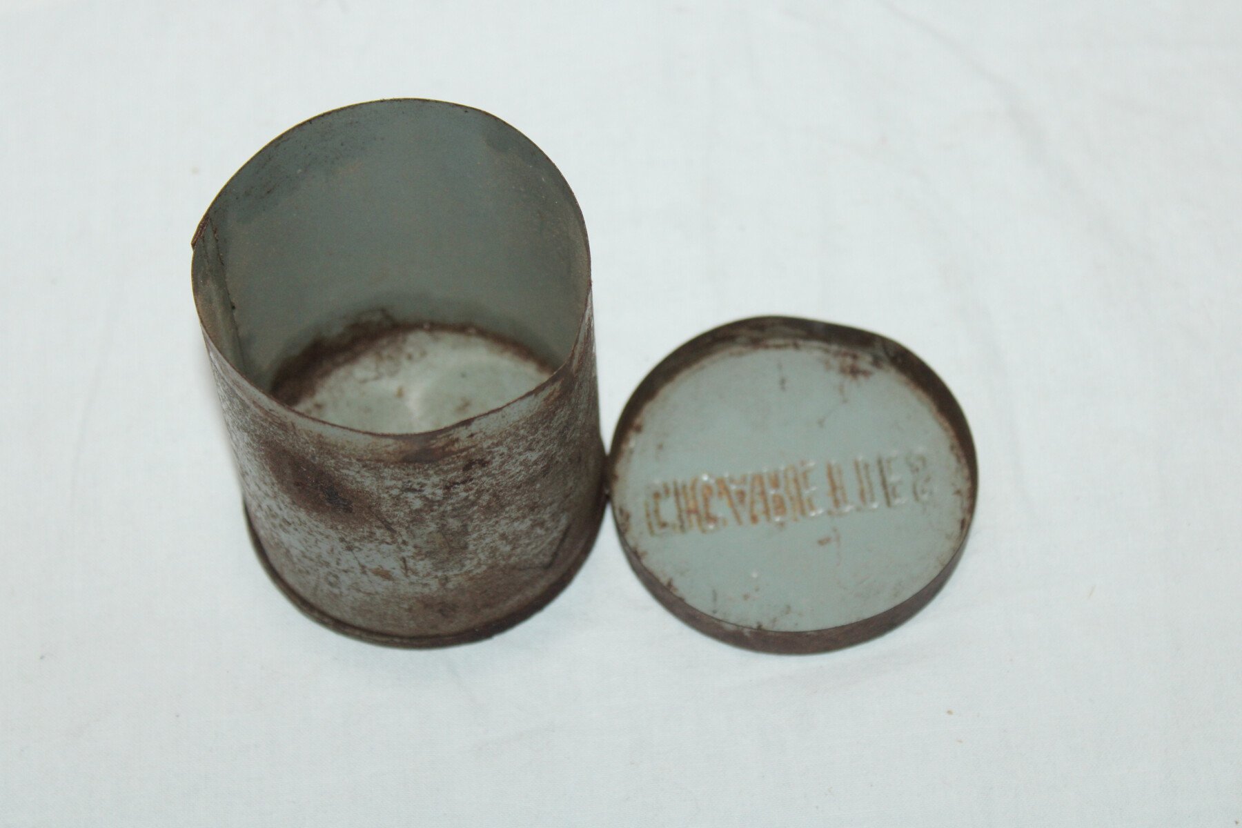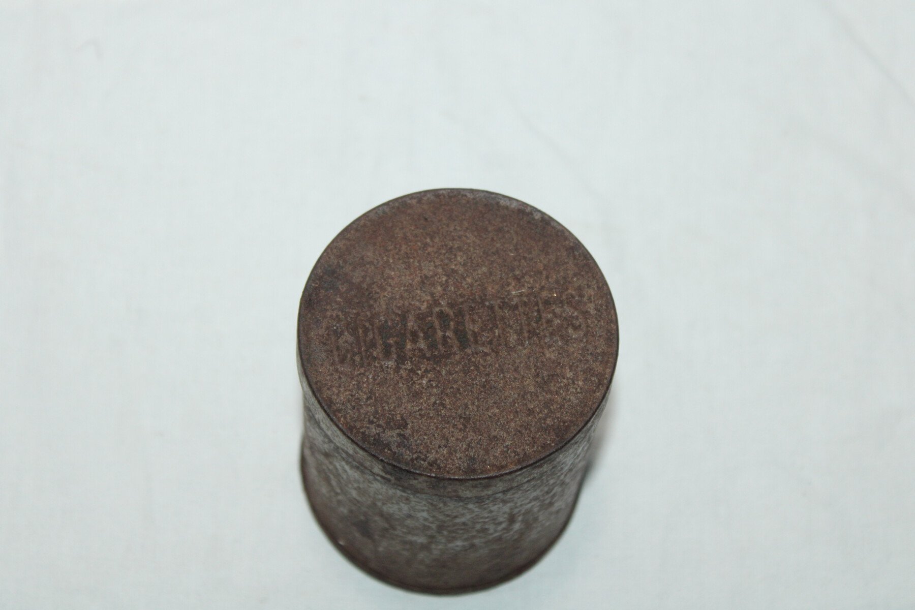 Boite de 50 cigarettes contenue dans les caisses de campo ration. Reste de peinture bleu a l'intérieur.