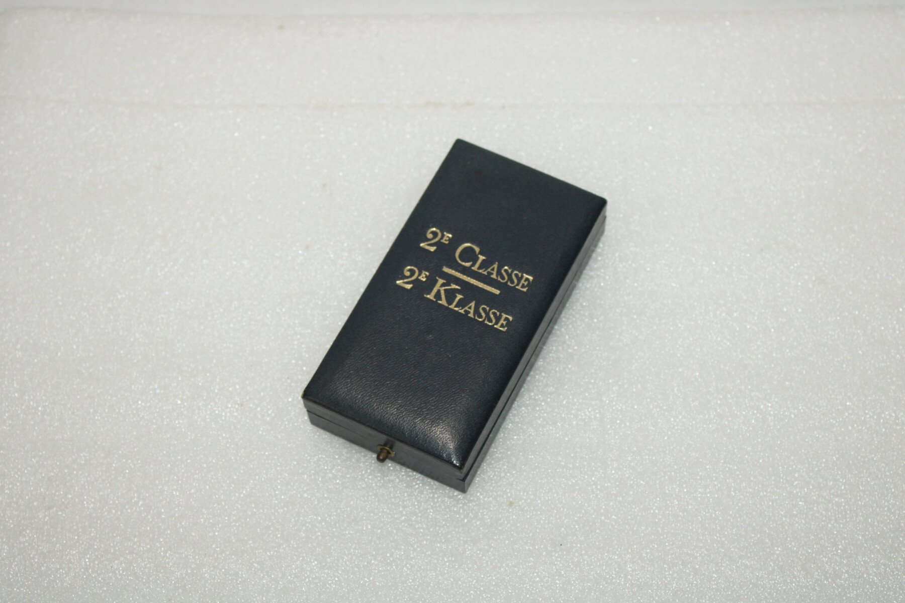 Boite de médaille Belge de 2e classe. Adresse du fabricant P.De greef Bruxelles.