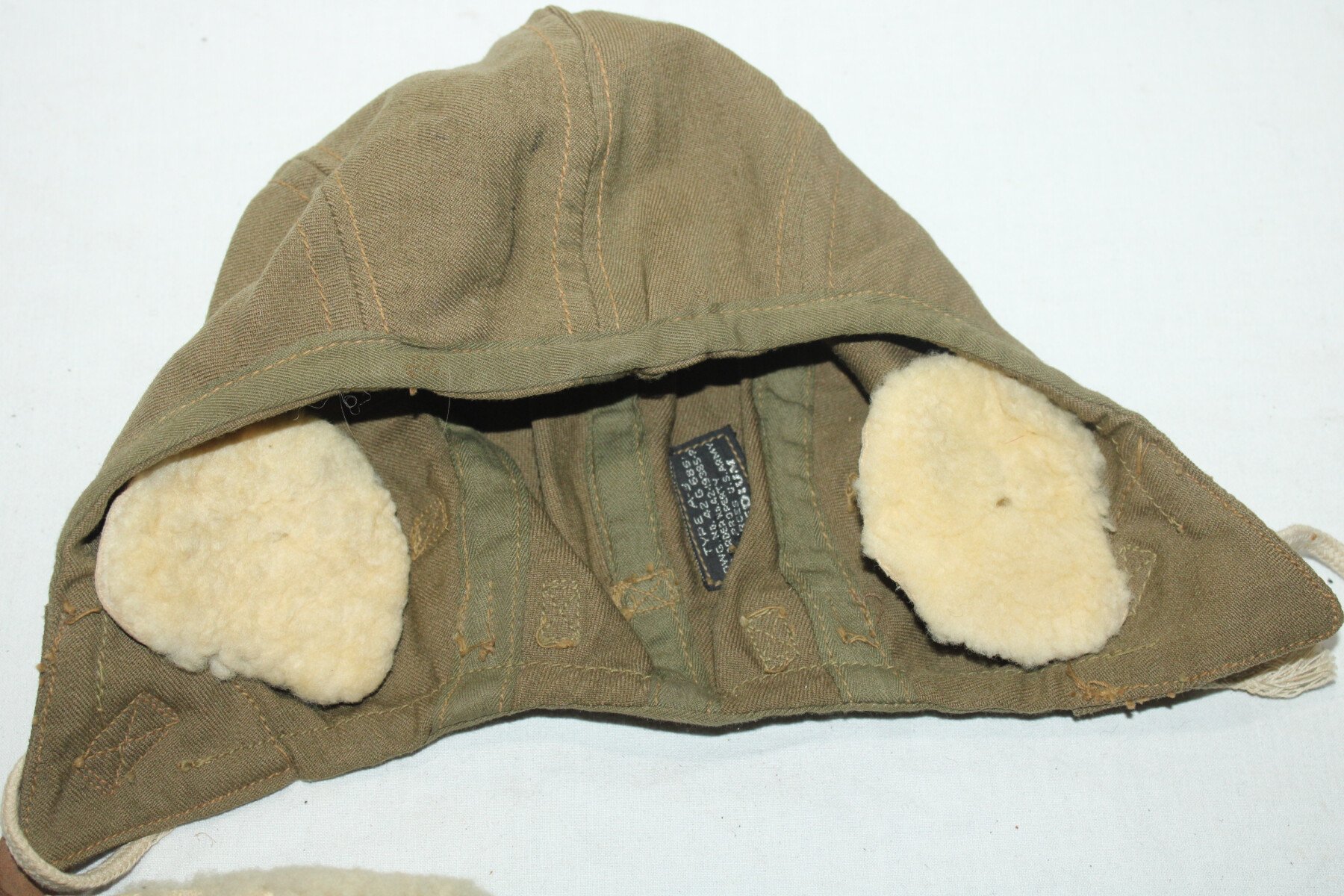 Bonnet de vol type A-9. Bon état général, complet. Etiquette présente. Taille medium.