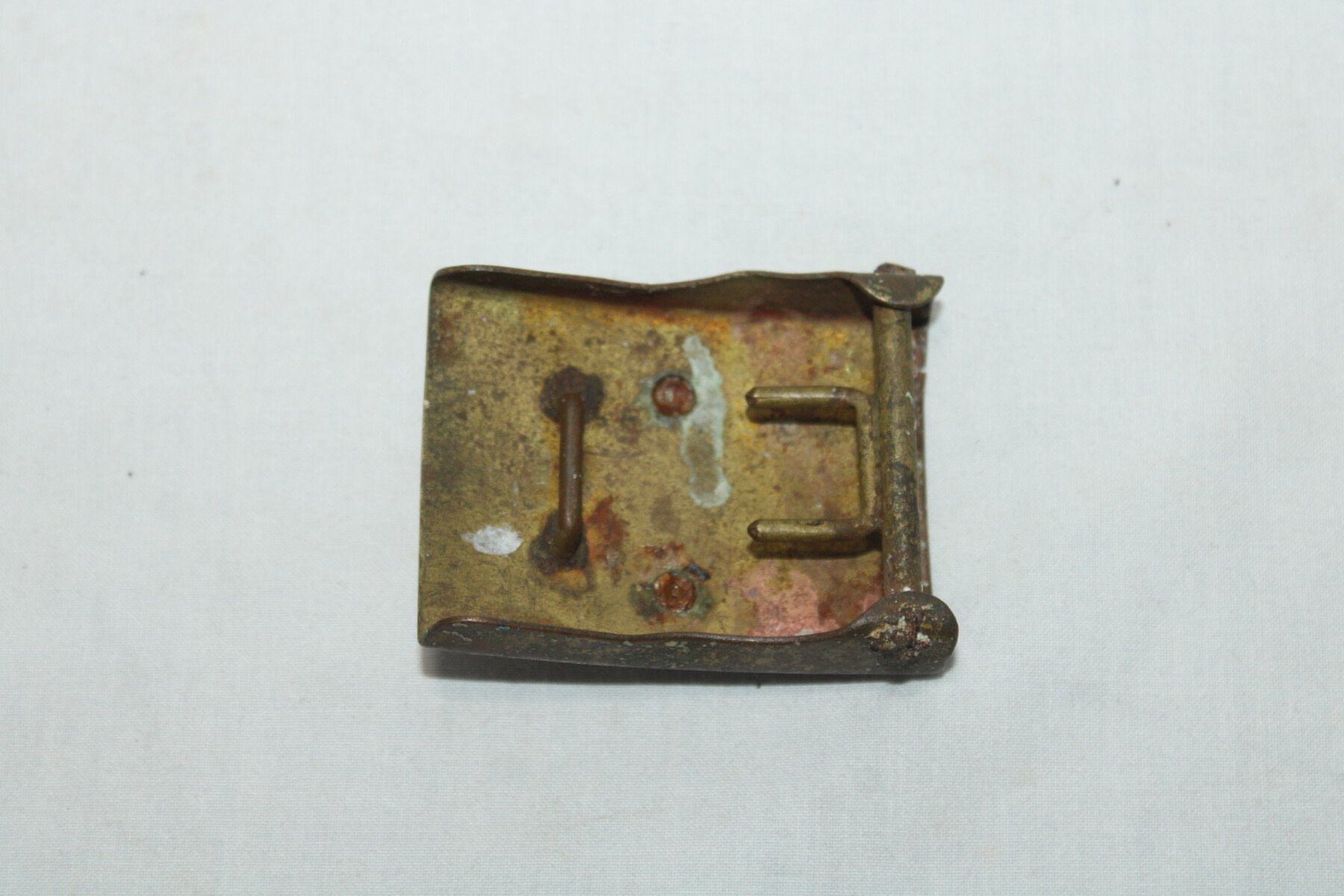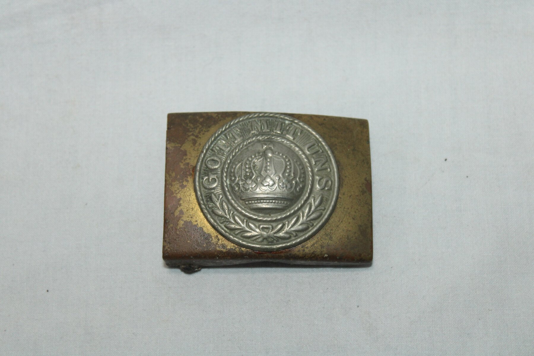 Boucle de ceinturon prussien modèle 1895 en laiton. Marqué gott mit uns. Manque de dorure.