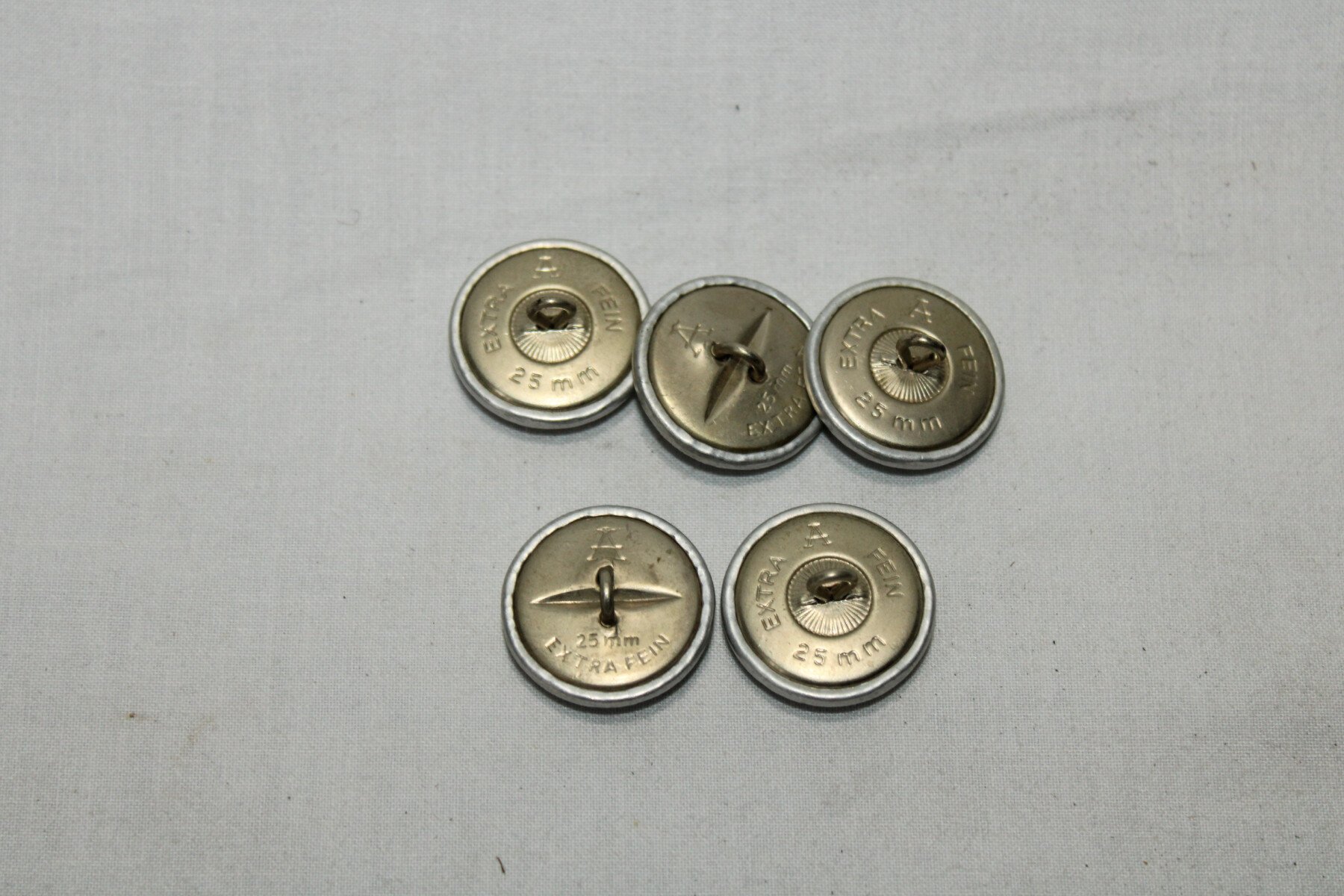 Bouton argenté, diamètre 25mm, plusieurs de disponibles, photo non contractuelle. Vendue à la pièce.
