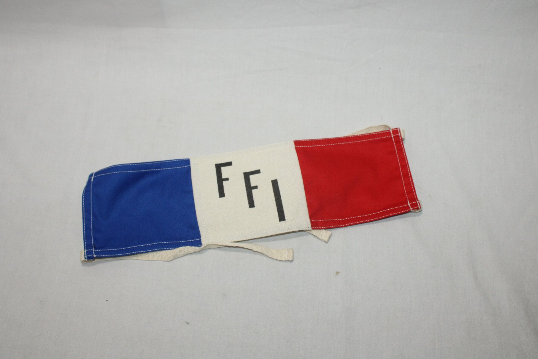 Brassard  des forces françaises de L'intérieur fermeture à sanglons, Sigle FFI tamponné.