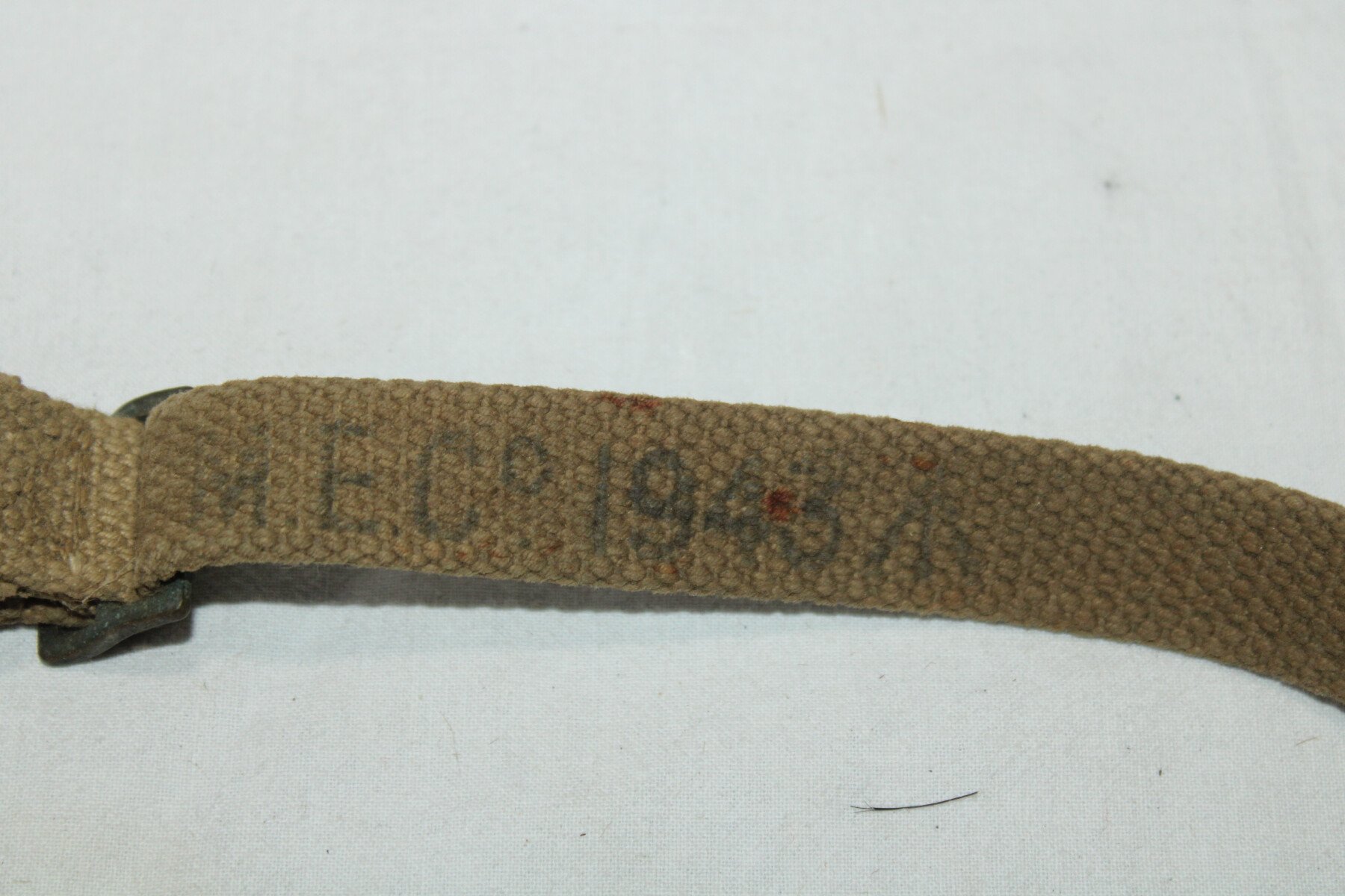 Bretelle de STEN, daté 1943. Rouille sur la toile et les partie métallique.