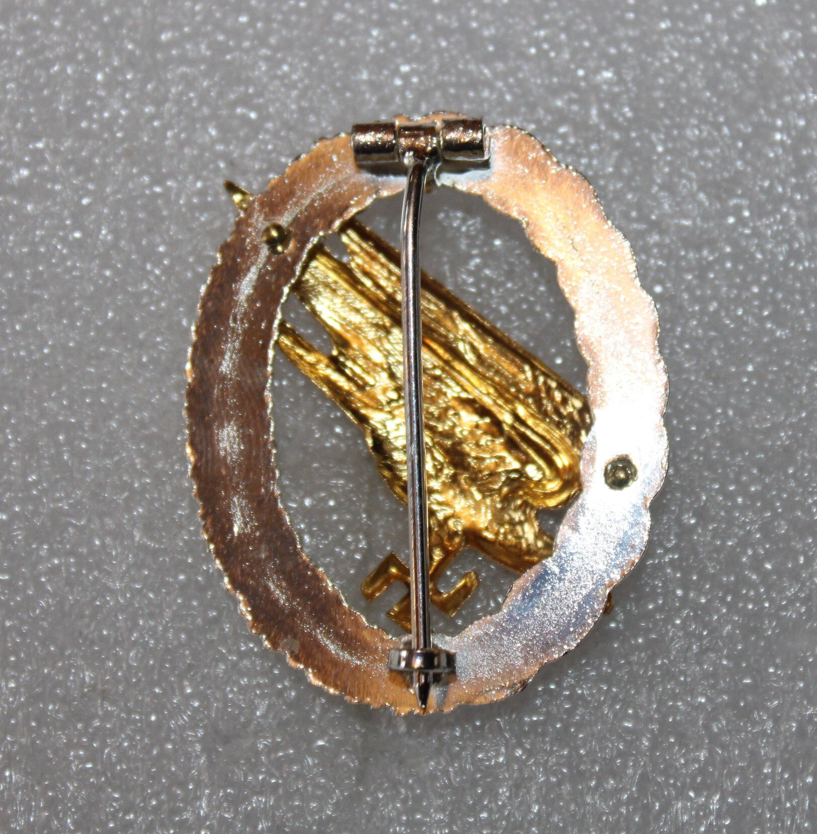 Ce brevet parachutiste de la Luftwaffe (armée de l'air) est la version métal. Fallschirmschützenabzeichen