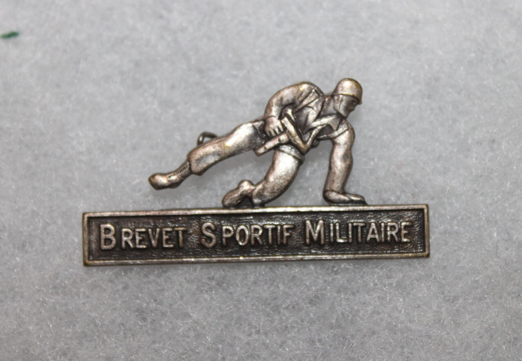 Insigne de poitrine du brevet sportif militaire , ancien modèle avec la Mat 49, fabrication dos guilloché. G 1469.