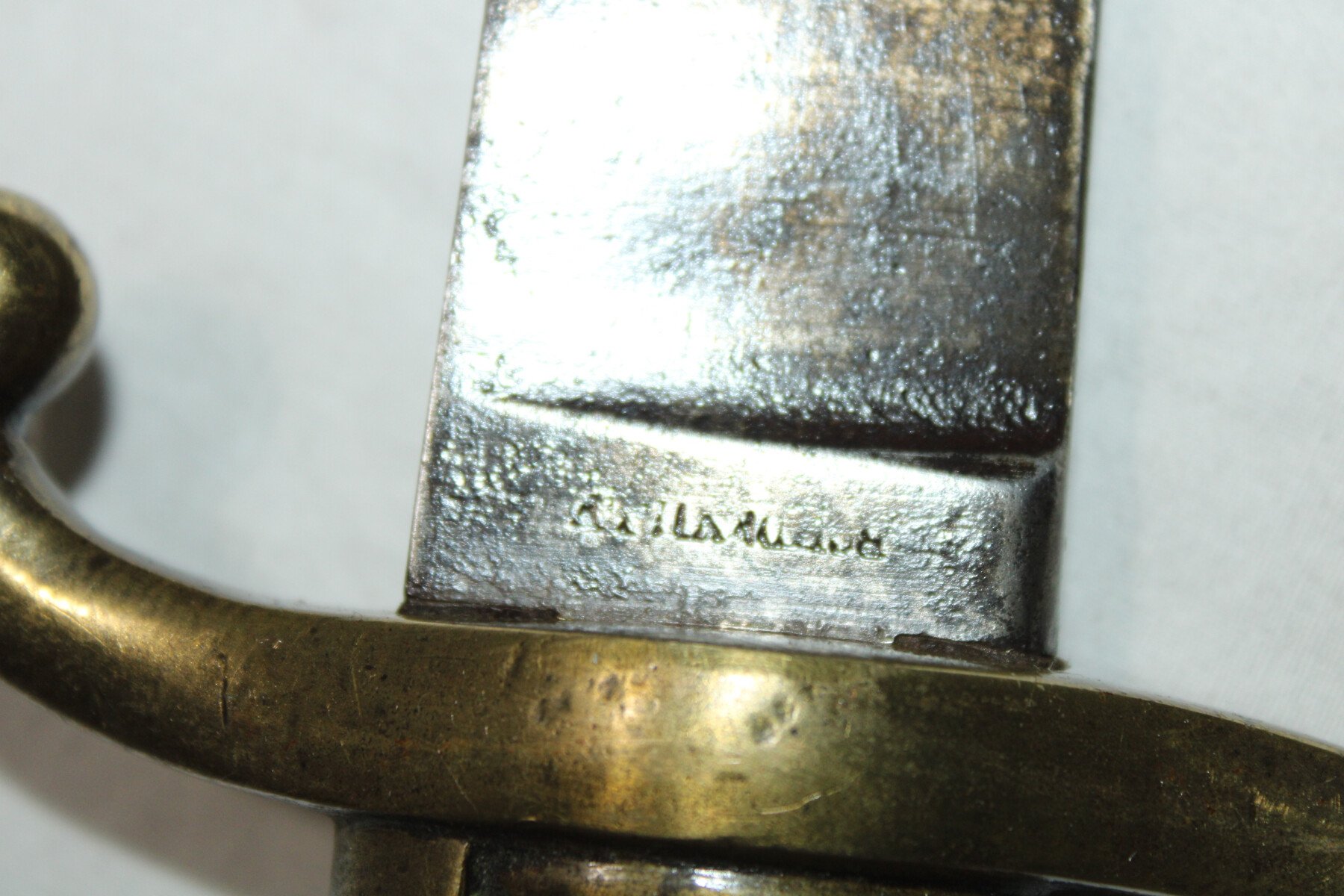 SABRE D'INFANTERIE DIT « SABRE BRIQUET », MODÈLE 1816 An XI, RESTAURATION.Monture monobloc en laiton, poignée cannelée de 28 torons, quillon simplifié enroulé en bouton. Garde à une branche...