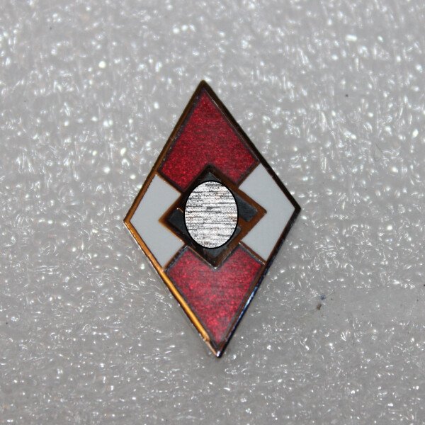 Petite broche pour foulard, cravate ou autre, de la Hitlerjugend (jeunesses hitlériennes) vous pouvez retirer l'attache pour mettre l'insigne sur un poignard de la Hitlerjugend.