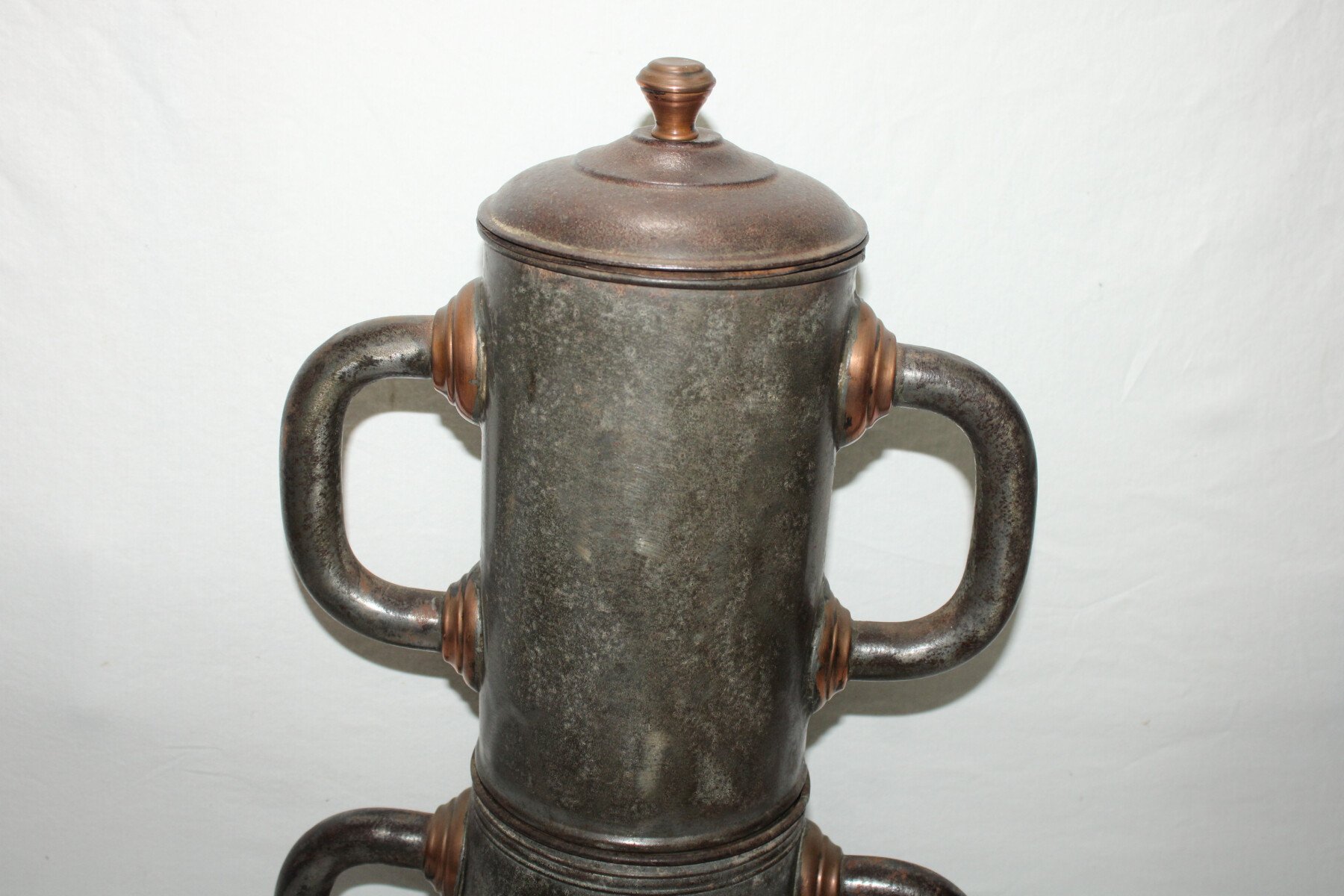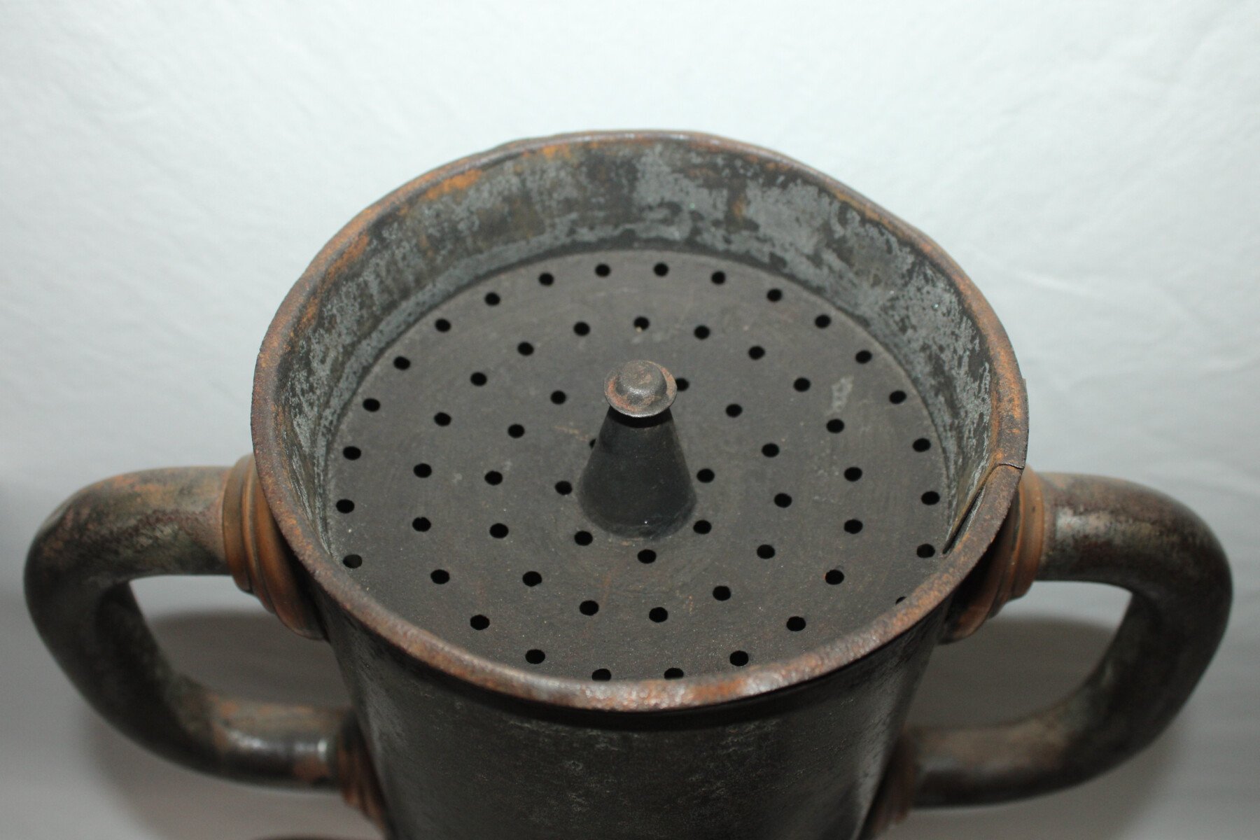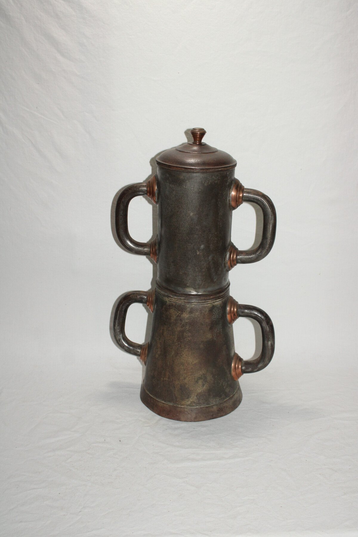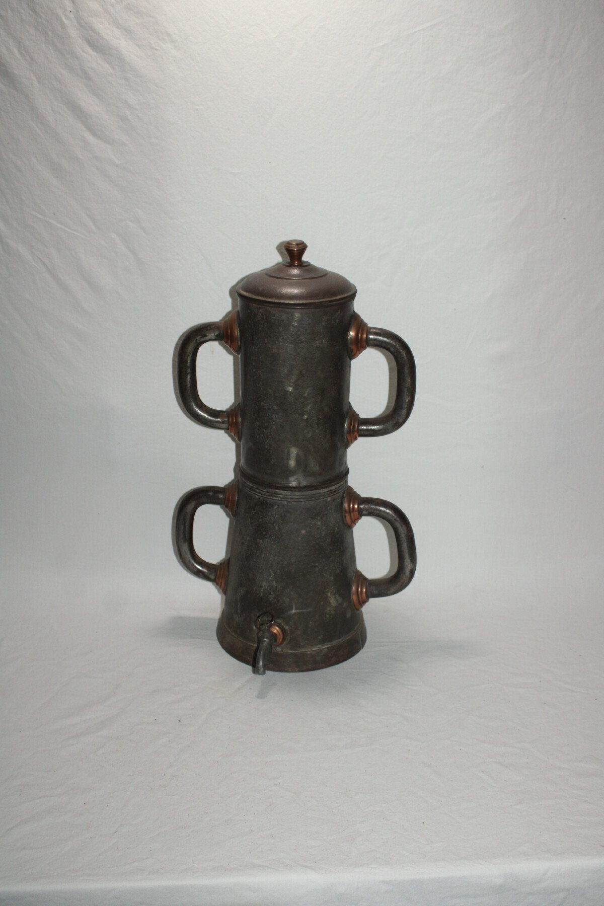Grande cafetière de camp. Complète avec ses filtre. 53cm de haut.