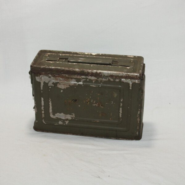 Caisse en métal pour bande de mitrailleuse de calibre.30, marqué cal.30M2. Fabrication SFLtd.