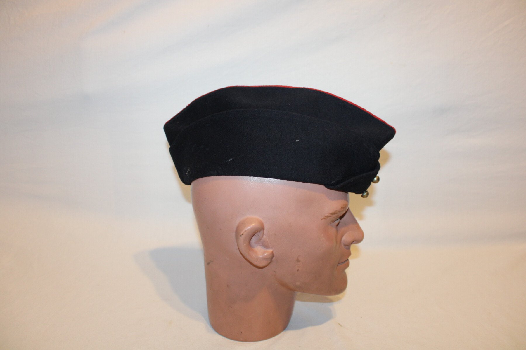 Calot modèle 57 de cuirassiers, boutons lisses sur le devant, présence d'un insigne de la cavalerie (fixation par épingle), taille 57/58, état d'usage.