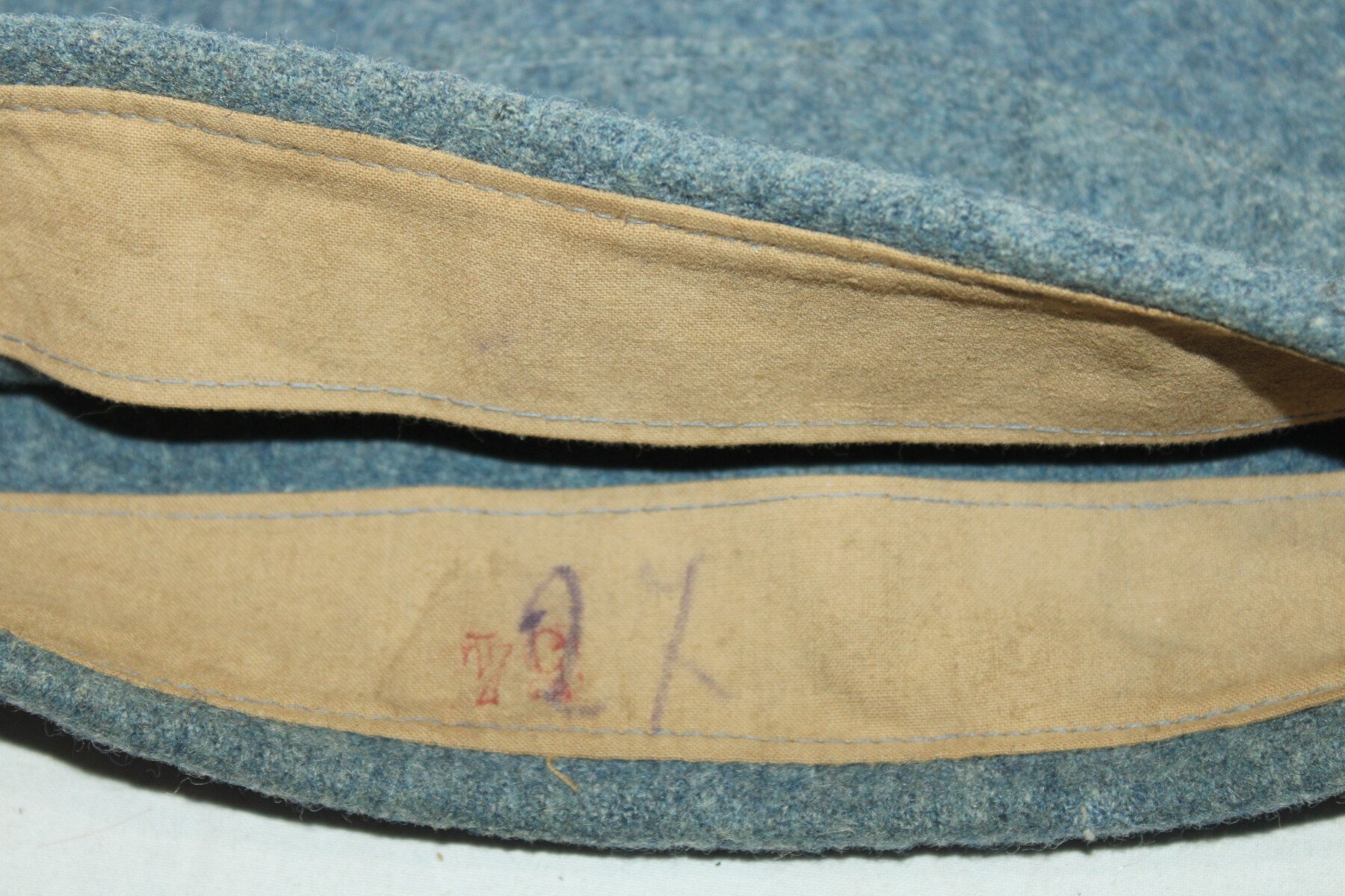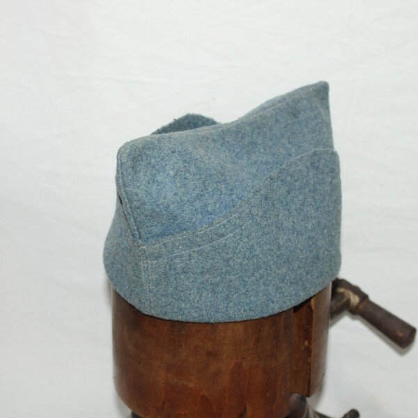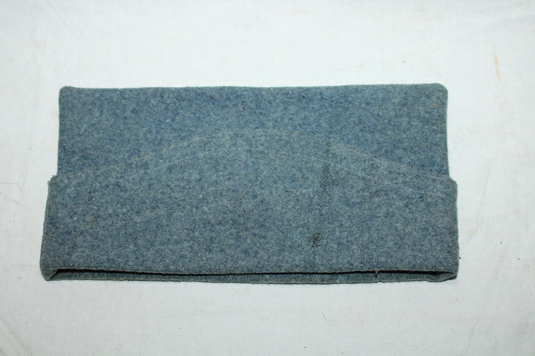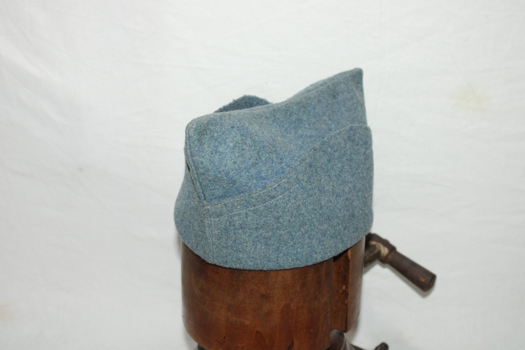 Calot troupe en drap de laine bleu horizon modèle 1918, état d'usage, plusieurs petit trous. Pas de tampon de date. Taille 54.