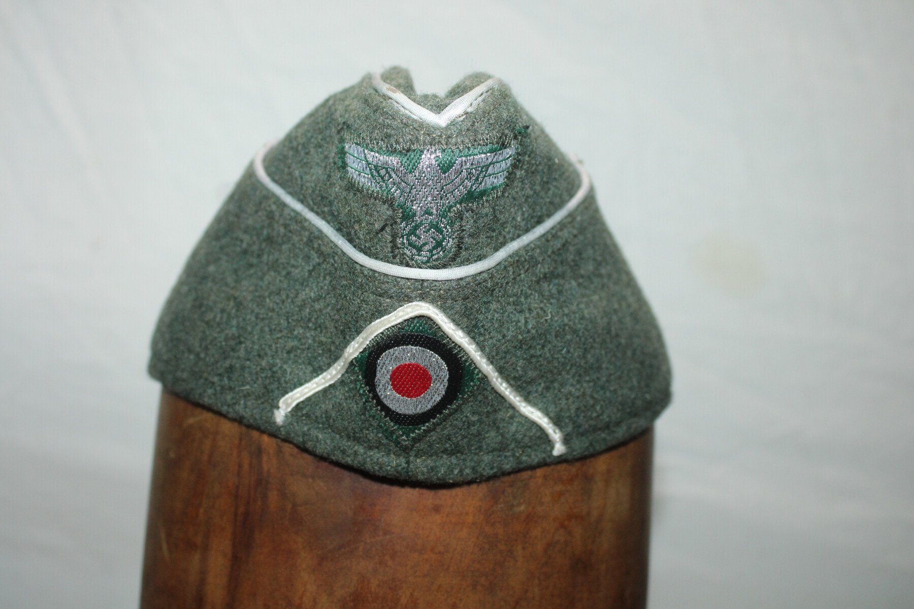 Fabrication en drap de laine du calot d'officier mle 35 de la Wehrmacht, taille 57. Liseré blanc de l'Infanterie.