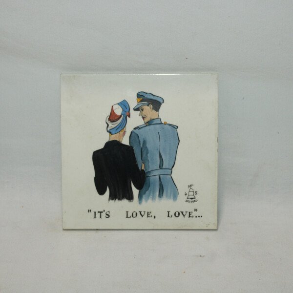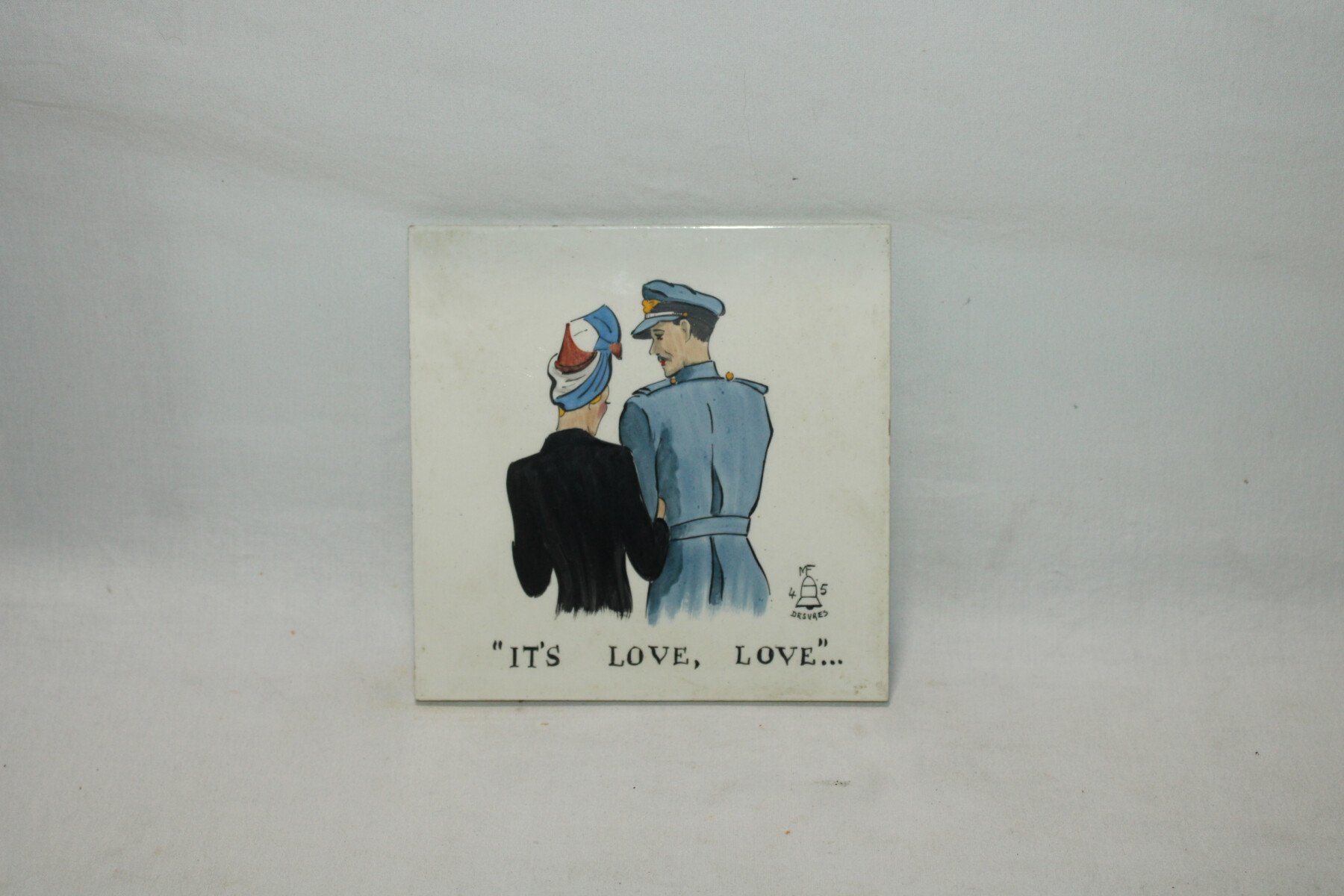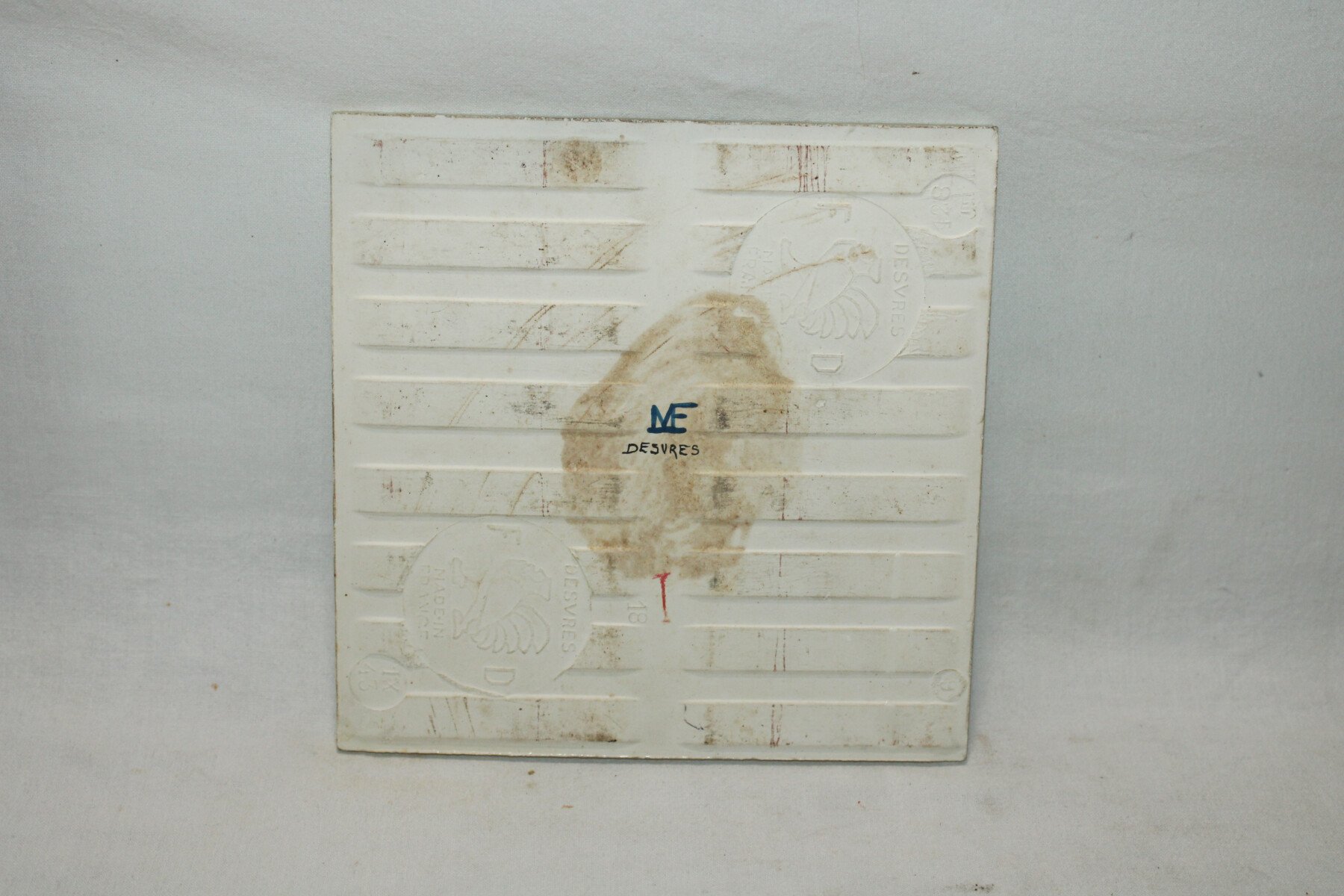 Un carreau de carrelage avec peinture libération. Fabrication Desvres et daté 1945.