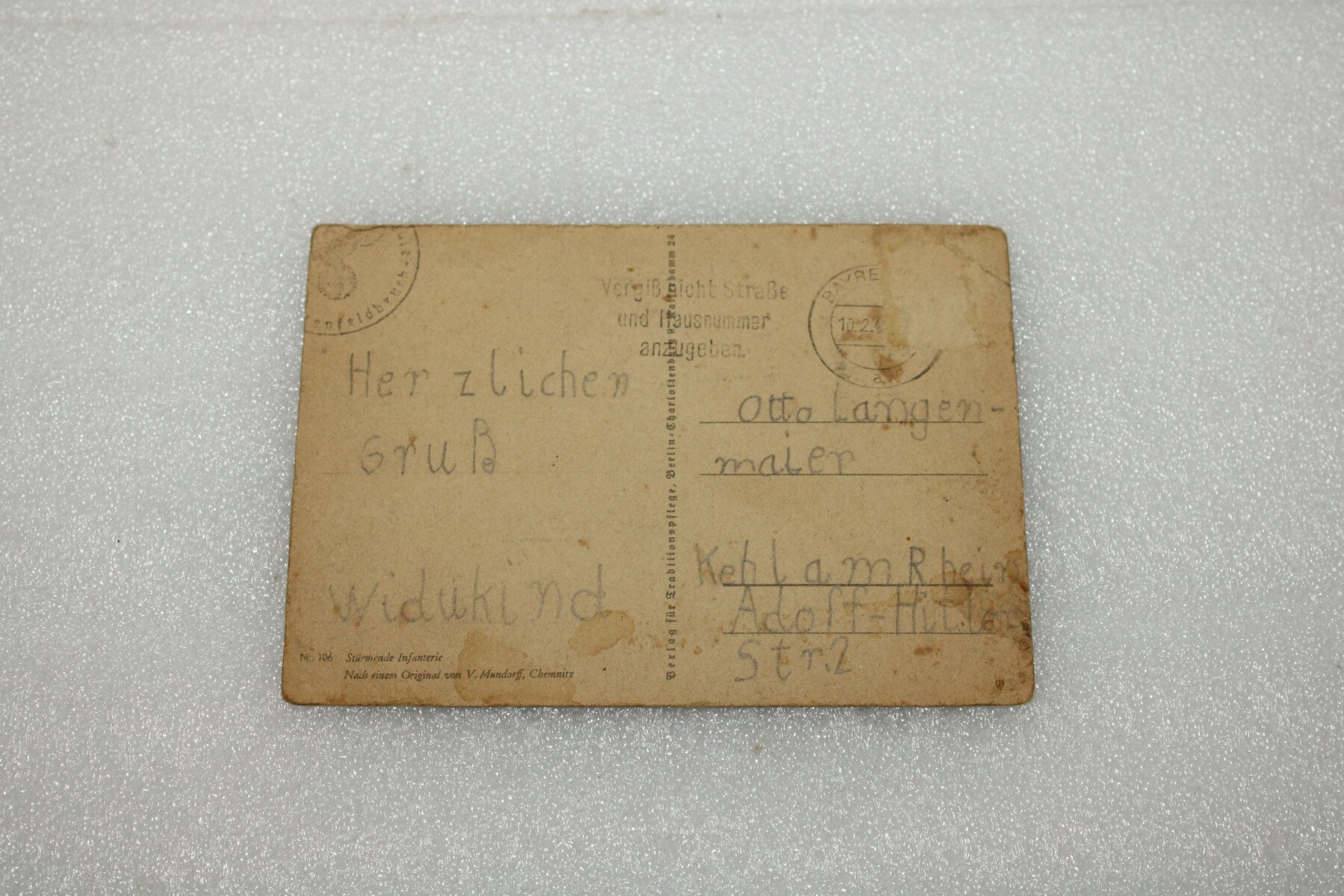 Carte postale avec tampon de la bavière.