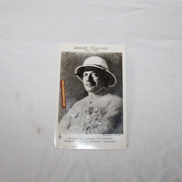 Carte postale avec André Maginot.André Maginot est un homme politique français, né le 17 février 1877 à Paris, où il est mort le 7 janvier 1932.Plusieurs fois ministre, son nom est associé à...