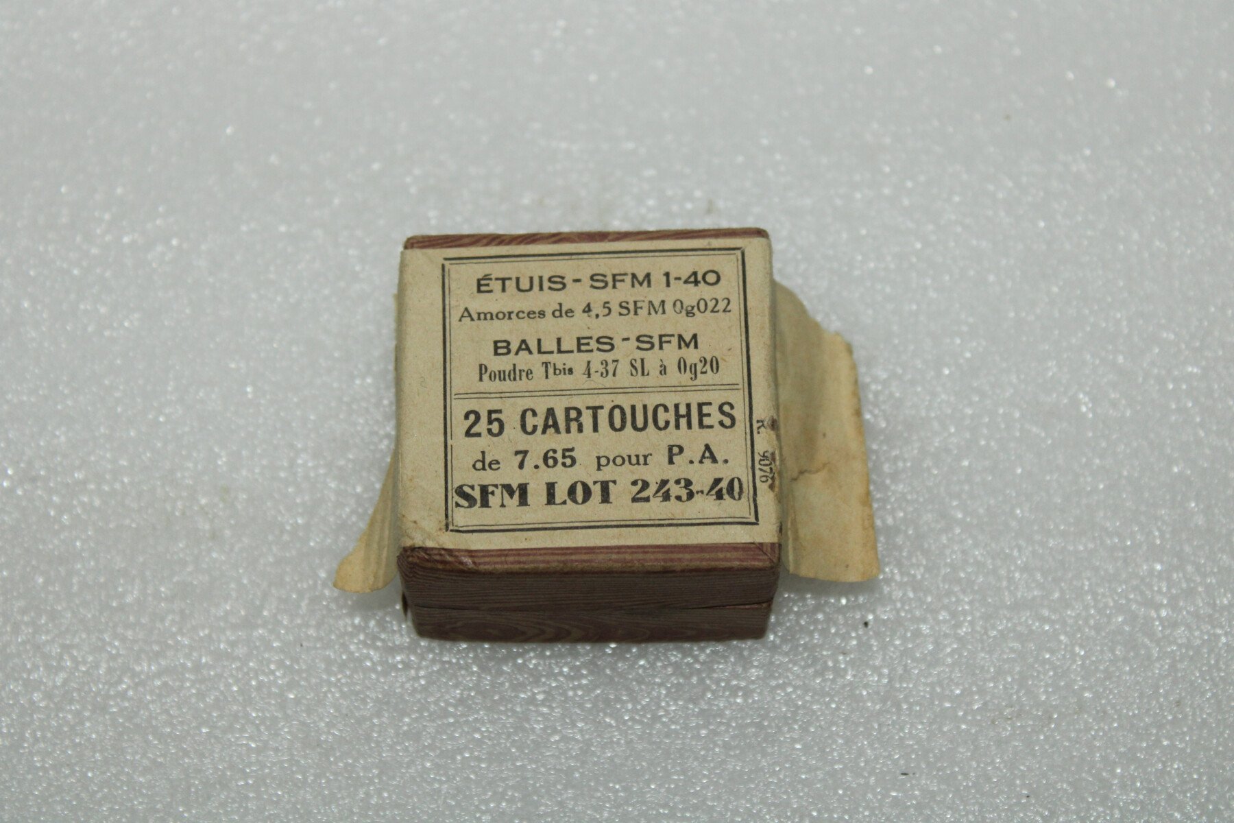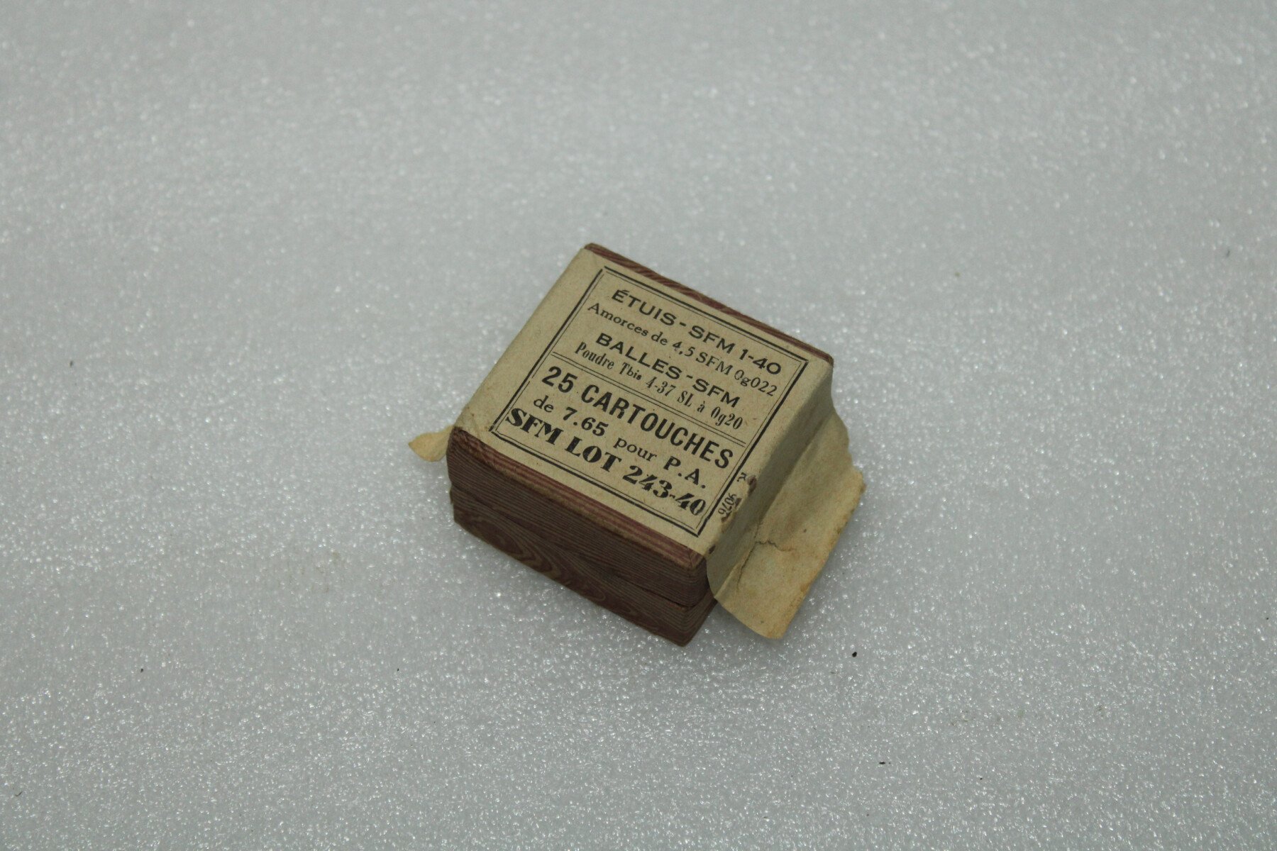 Boite vide de 25 cartouches de 7.65 pour pistolet ruby ou autre. Carton daté 1940.