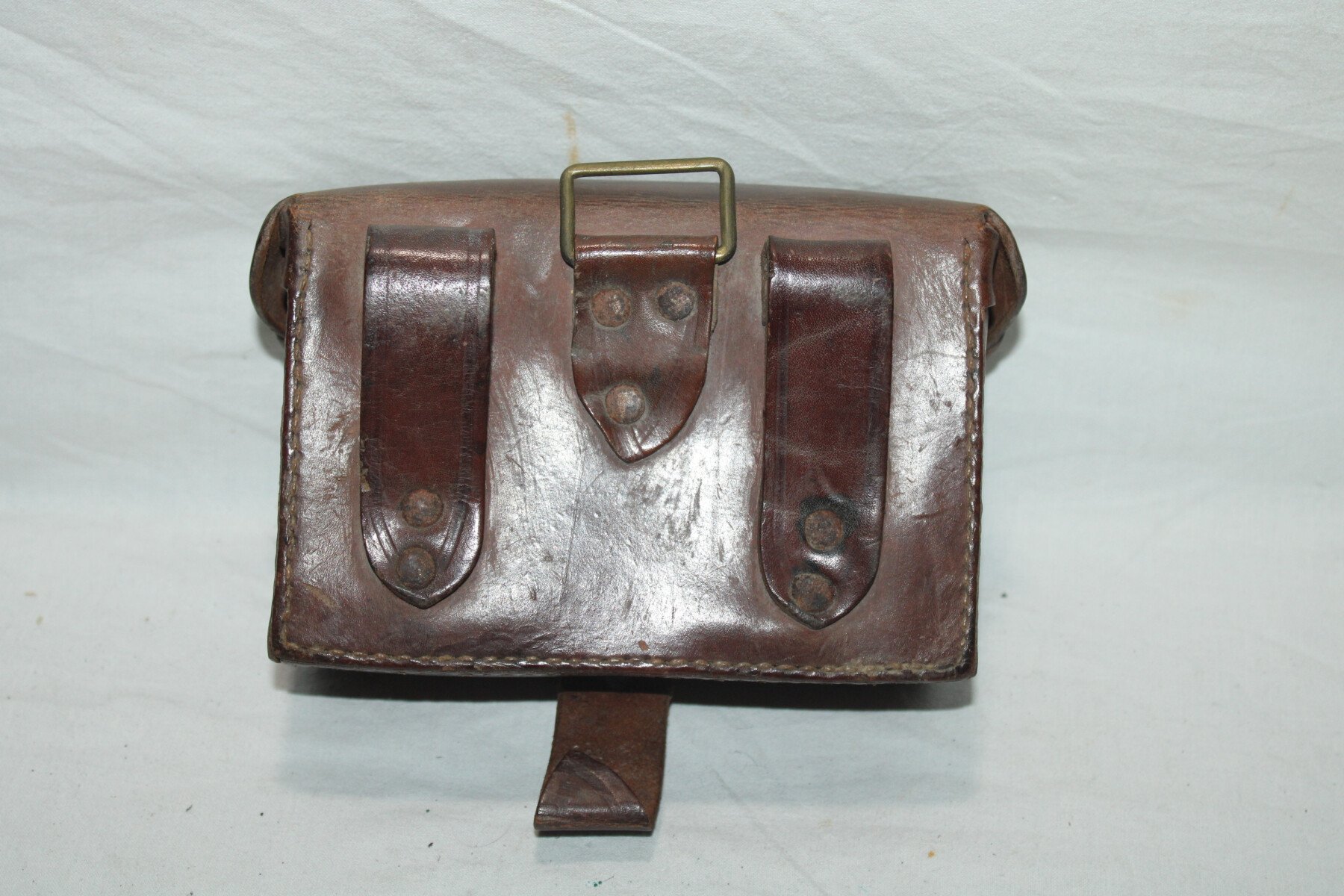Cartouchière espagnol modèle 1926 en cuir fauve. Cuir souple. Pas de marquage visible.