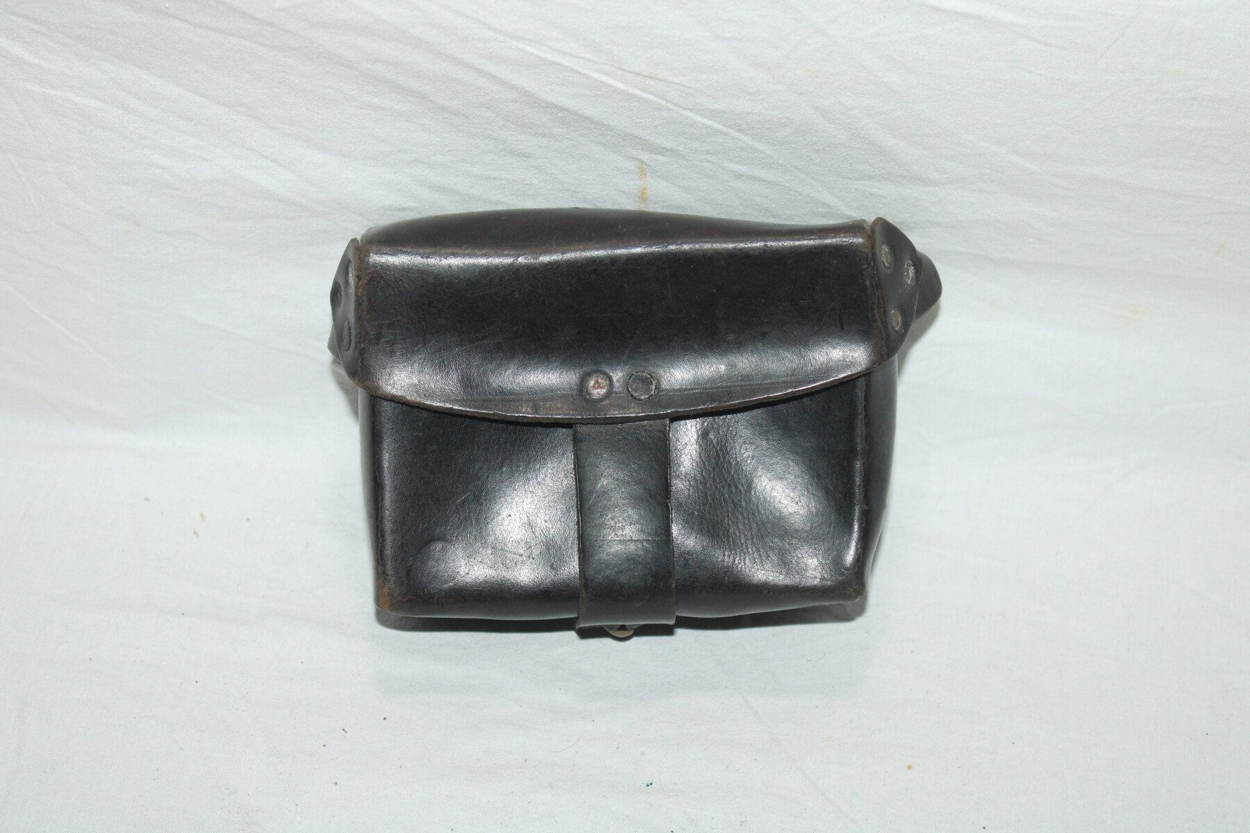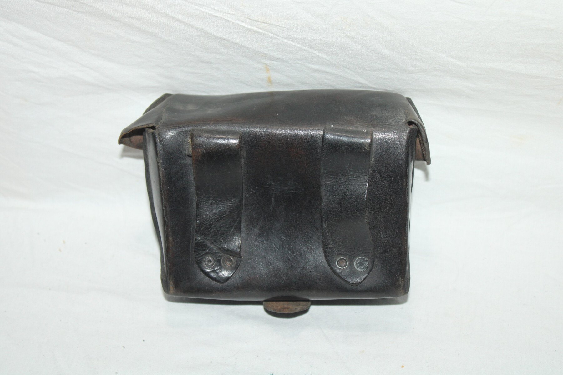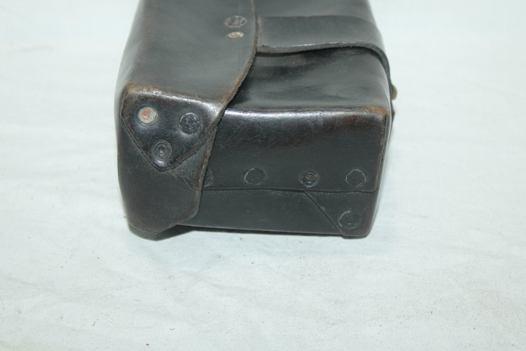 Cartouchière espagnol modèle 1926 en cuir noir. Cuir souple. Rivet saute sur un passant réparé anciennement. Pas de marquage visible.