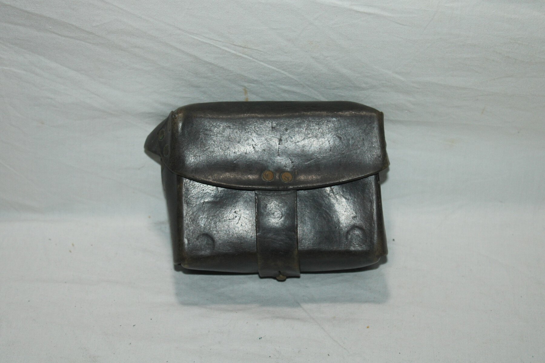 Cartouchière espagnol modèle 1926 en cuir noir. Cuir souple. Pas de marquage visible.