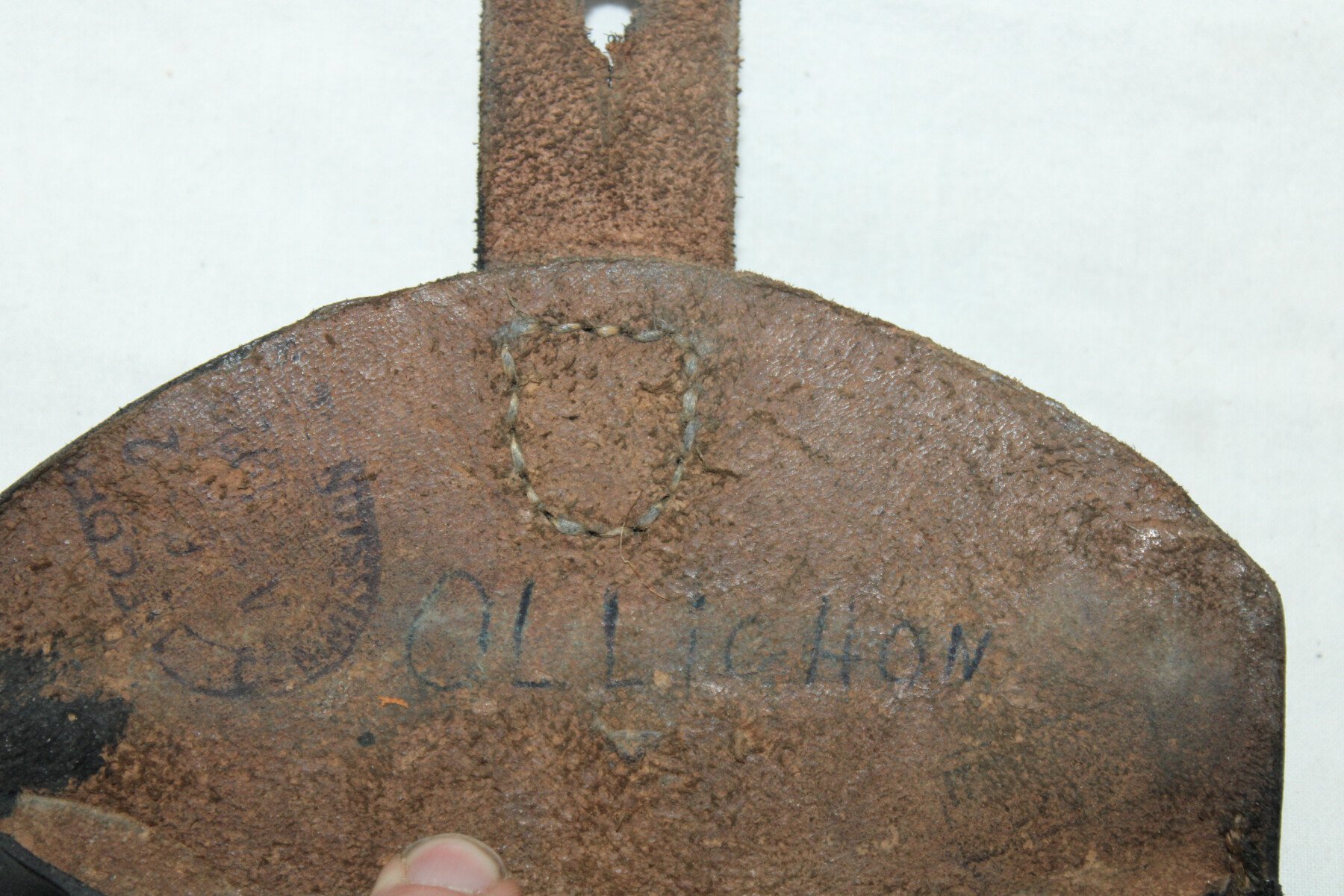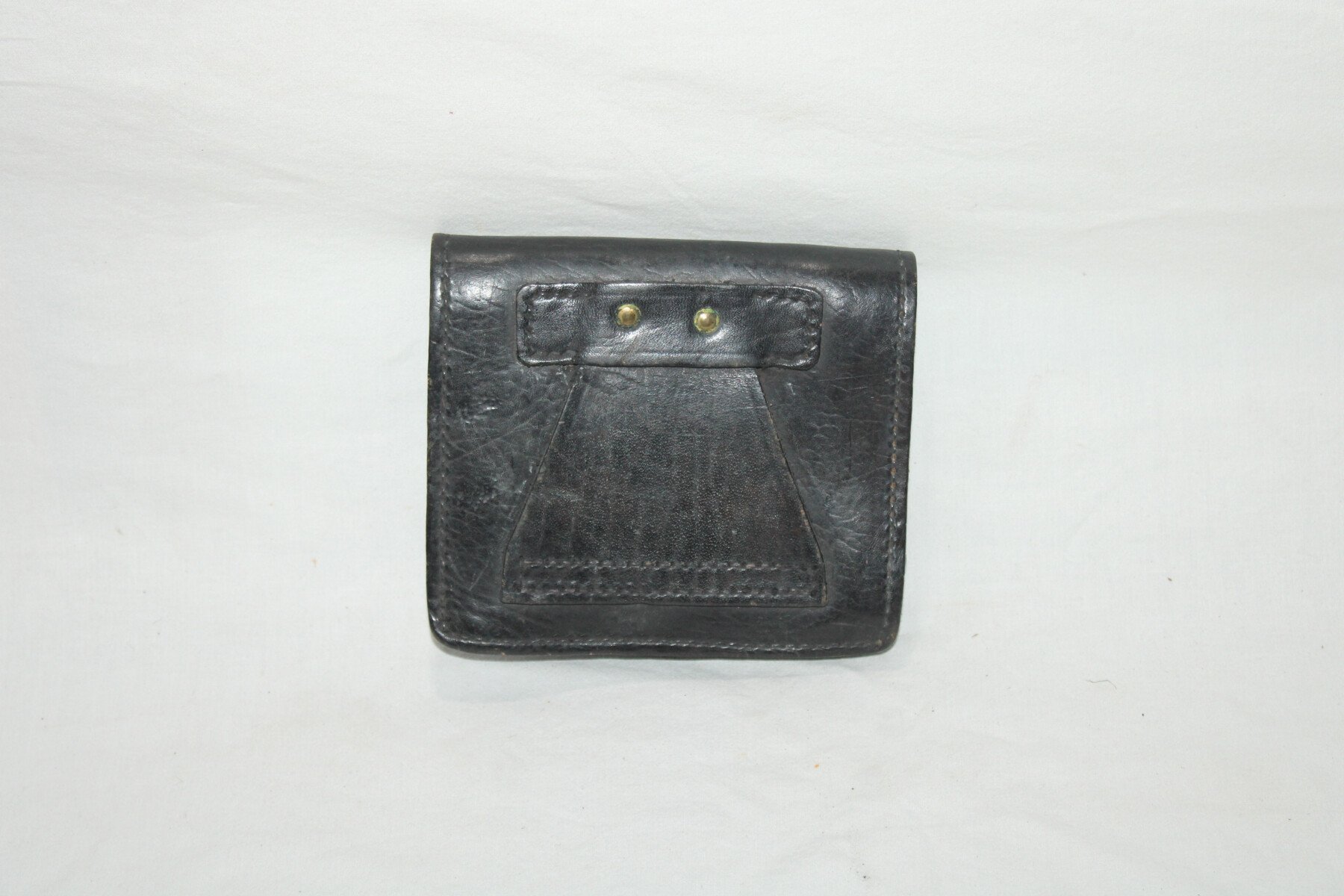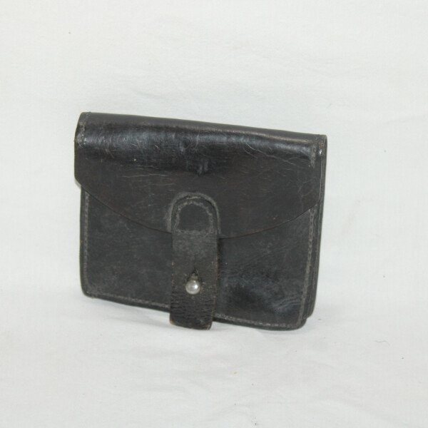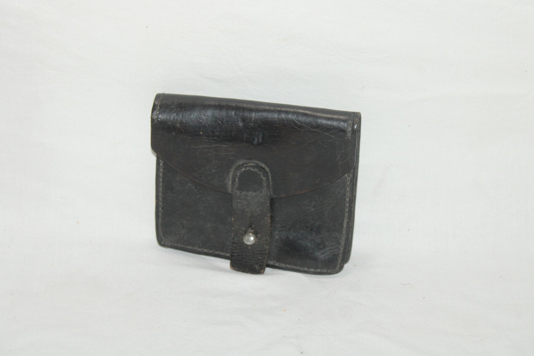 Cartouchière en cuir noir modèle 1916 complète avec sont rabat interne. Anneau absent. Daté 1923.