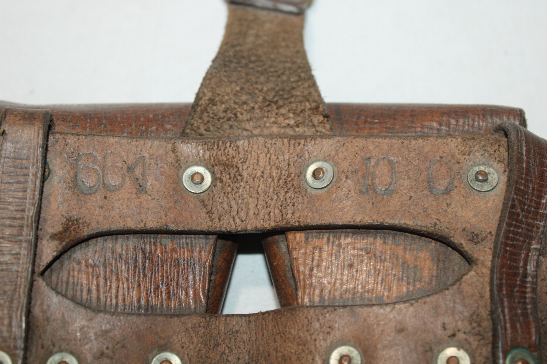 Paires de cartouchières pattern 1939 en cuir a deux compartiments. Pas de date visible. Couleur légèrement différente. Cuir souple. un sanglon interne coupé.