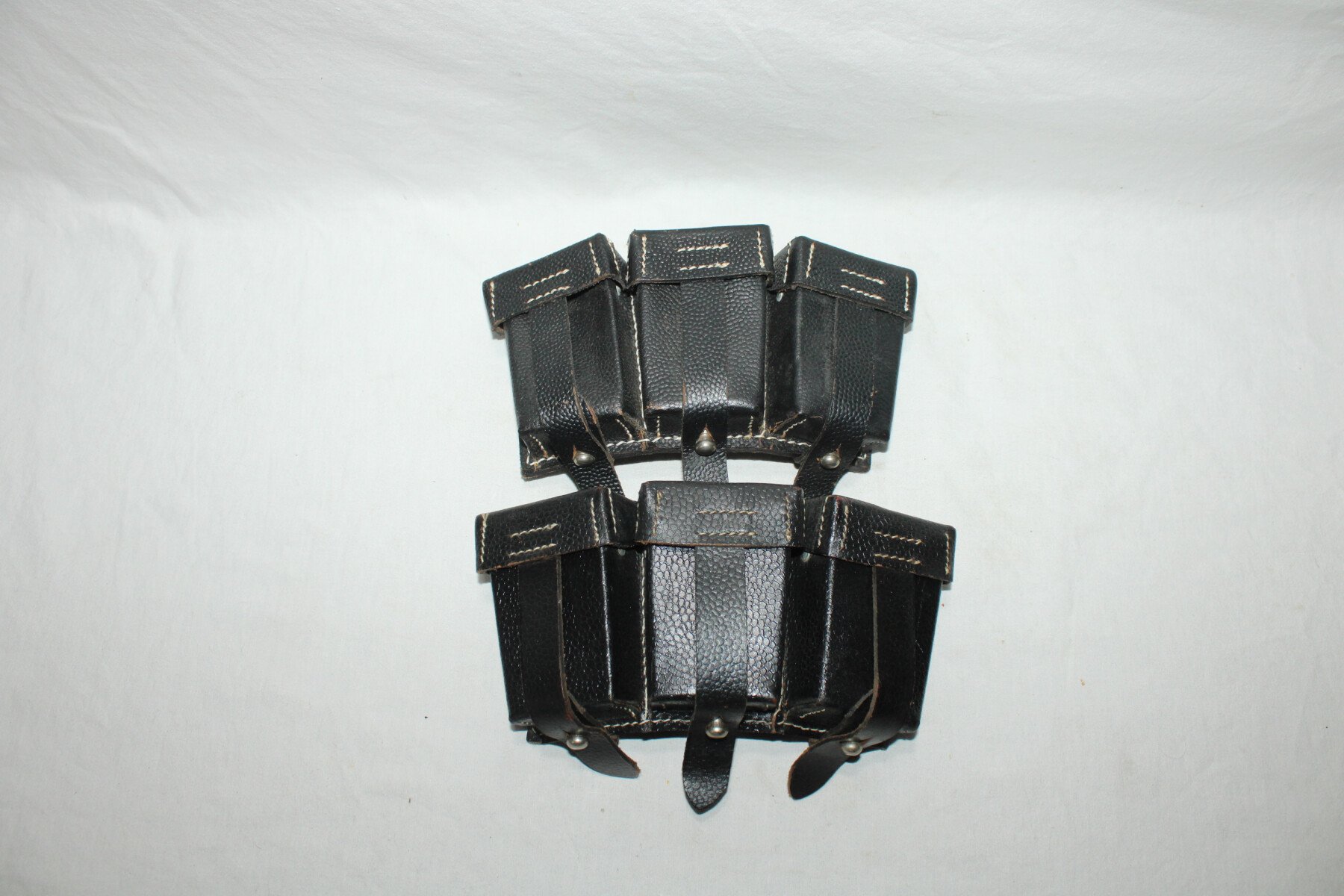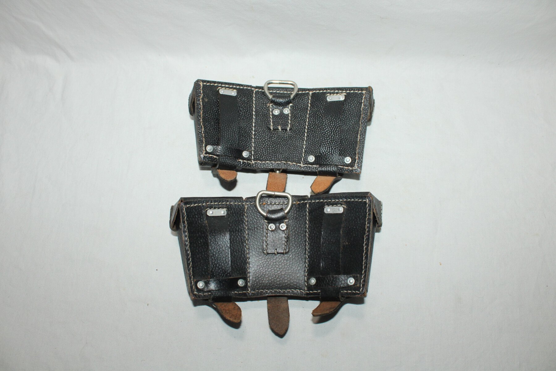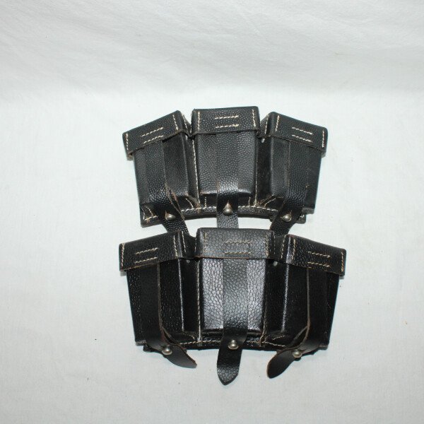 Paire de cartouchières de Mauser. Cuir noir, compartiment interne.