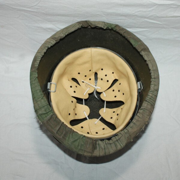 Coque de casque M42 restauré. Couvre casque réaliser en toile de zeltbahn original. Intérieur taille 57. Coque original, marqué.