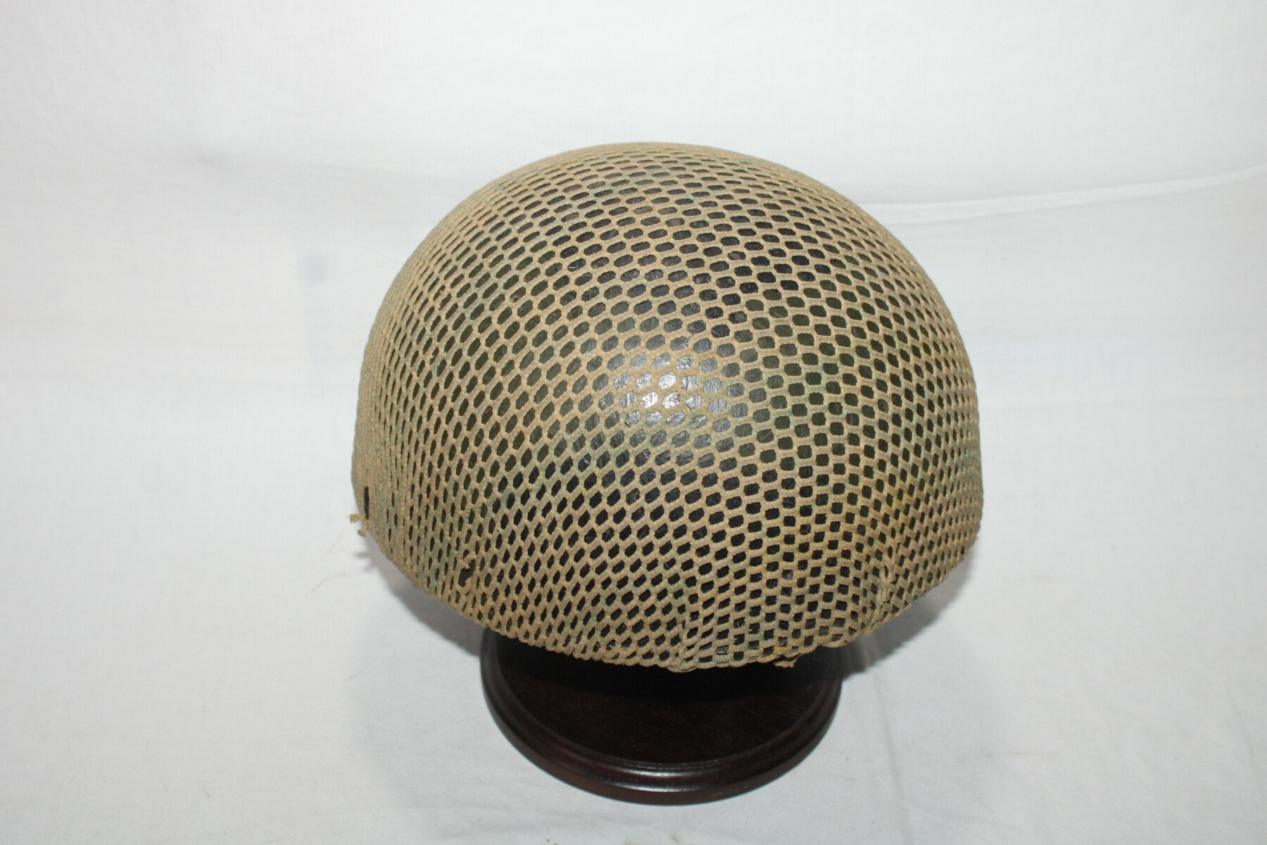 Casque de parachutiste Britannique 3e modèle , intérieur de fabrication CWL 1972 avec sa jugulaire en toile. Ce modèle est identique à la version 2e guerre mondiale. La coque est peinte de couleur camouflé noire et verte. Un filet maille crevette également camouflé à la peinture y a été apposé tel que. Intérieur de taille 7 ½ , qui, avec la rétractation du pourtour en mousse noire, donne une taille 57. Sur la coque interne, un nom, matricule et unité y a été apposé. Bel ensemble pour représenter à moindre coup avec un casque original, un parachutiste britannique ou allié de la seconde guerre mondiale.