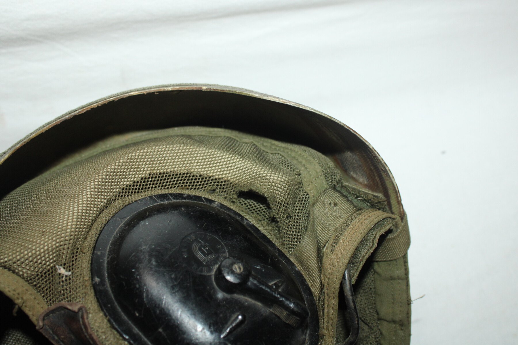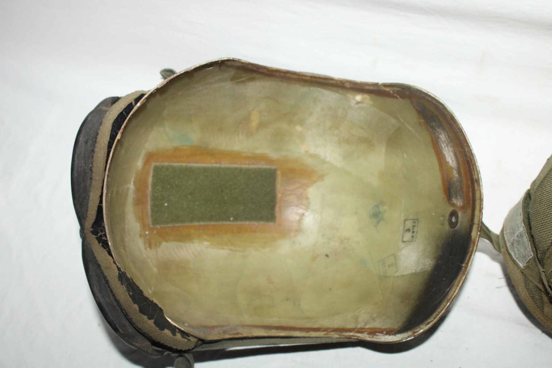 Casque pour équipage de véhicule américain. Etiquette sur la partie intérieur. Complet avec micro et fiche. Une paire de lunette fixé a l'arrière.