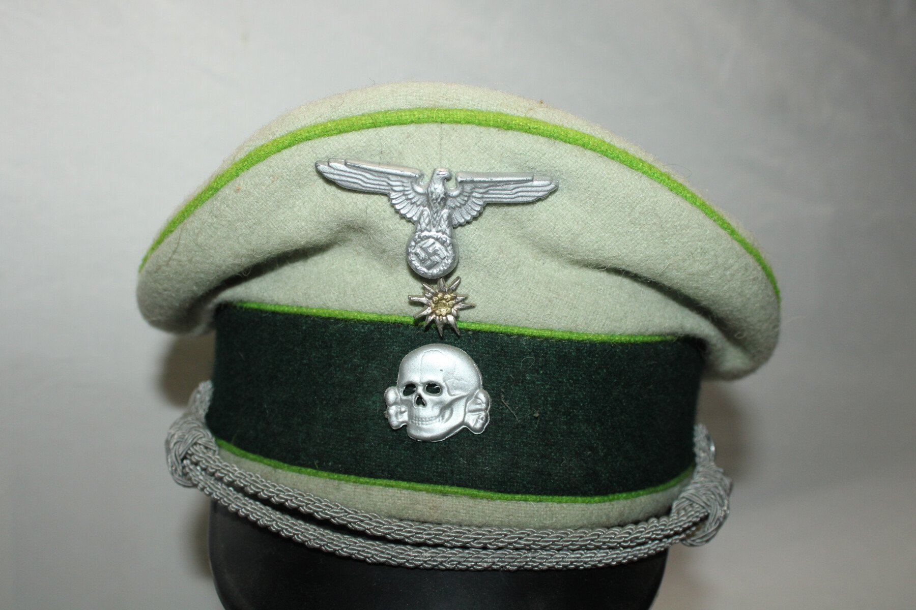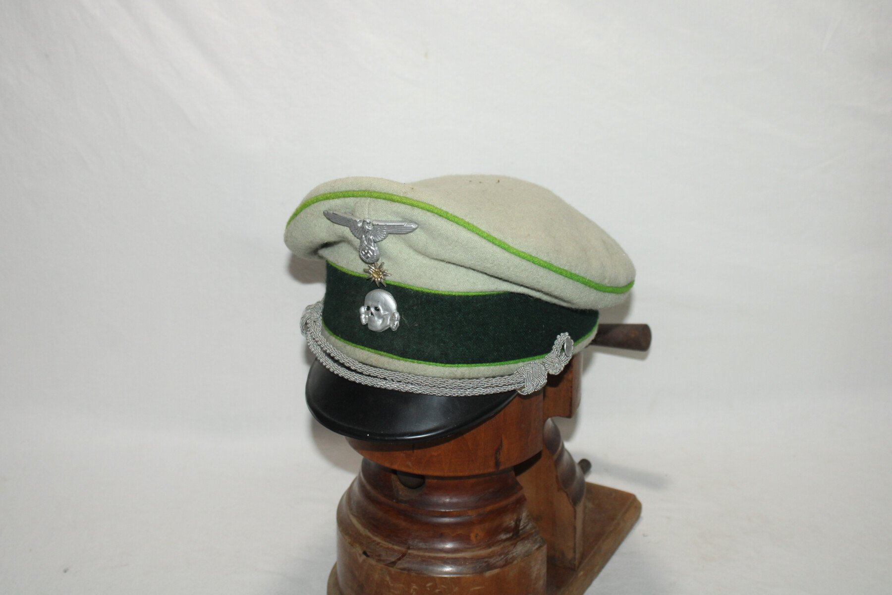 Casquette en drap de la Waffen-SS, taille 60. Liseré vert.