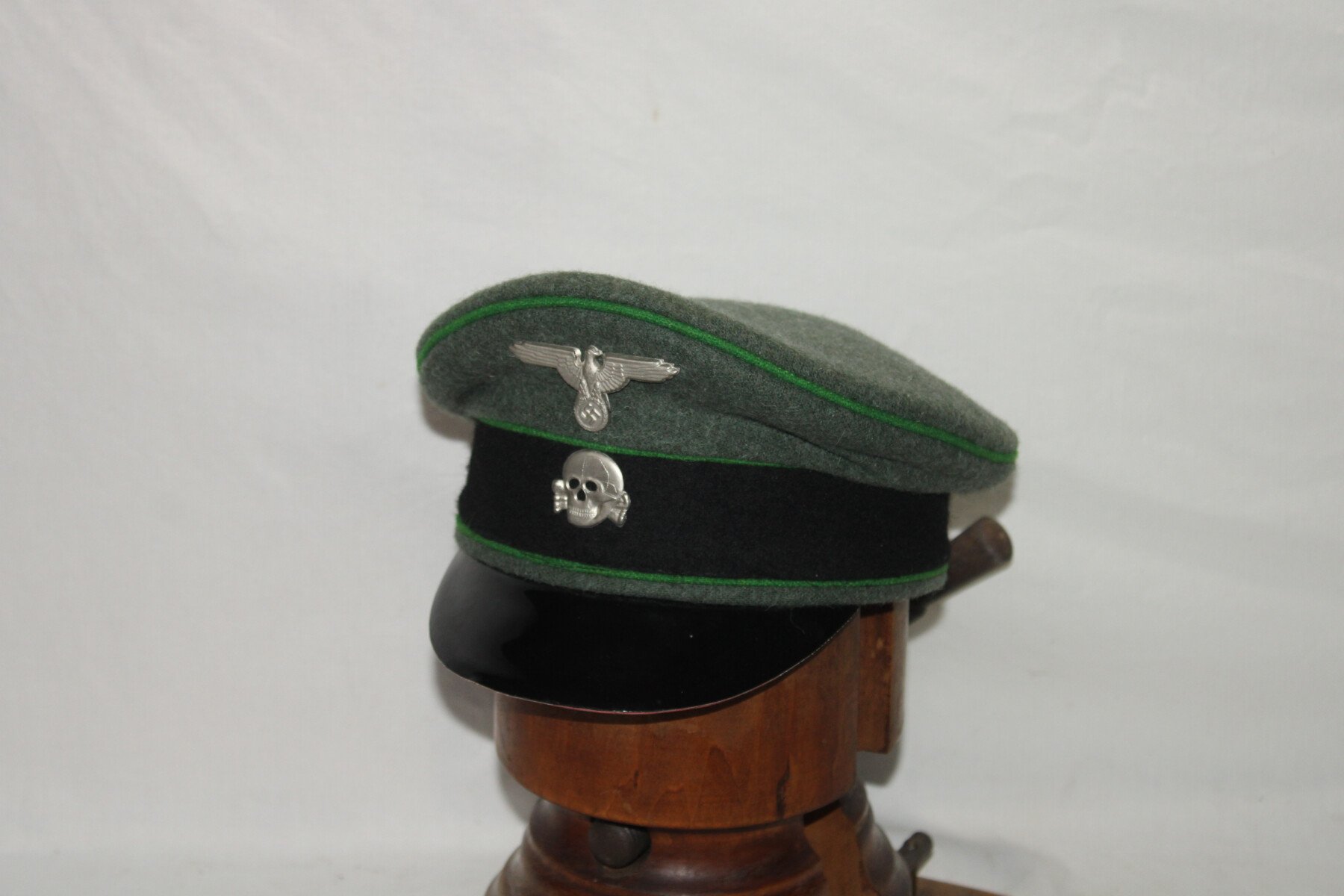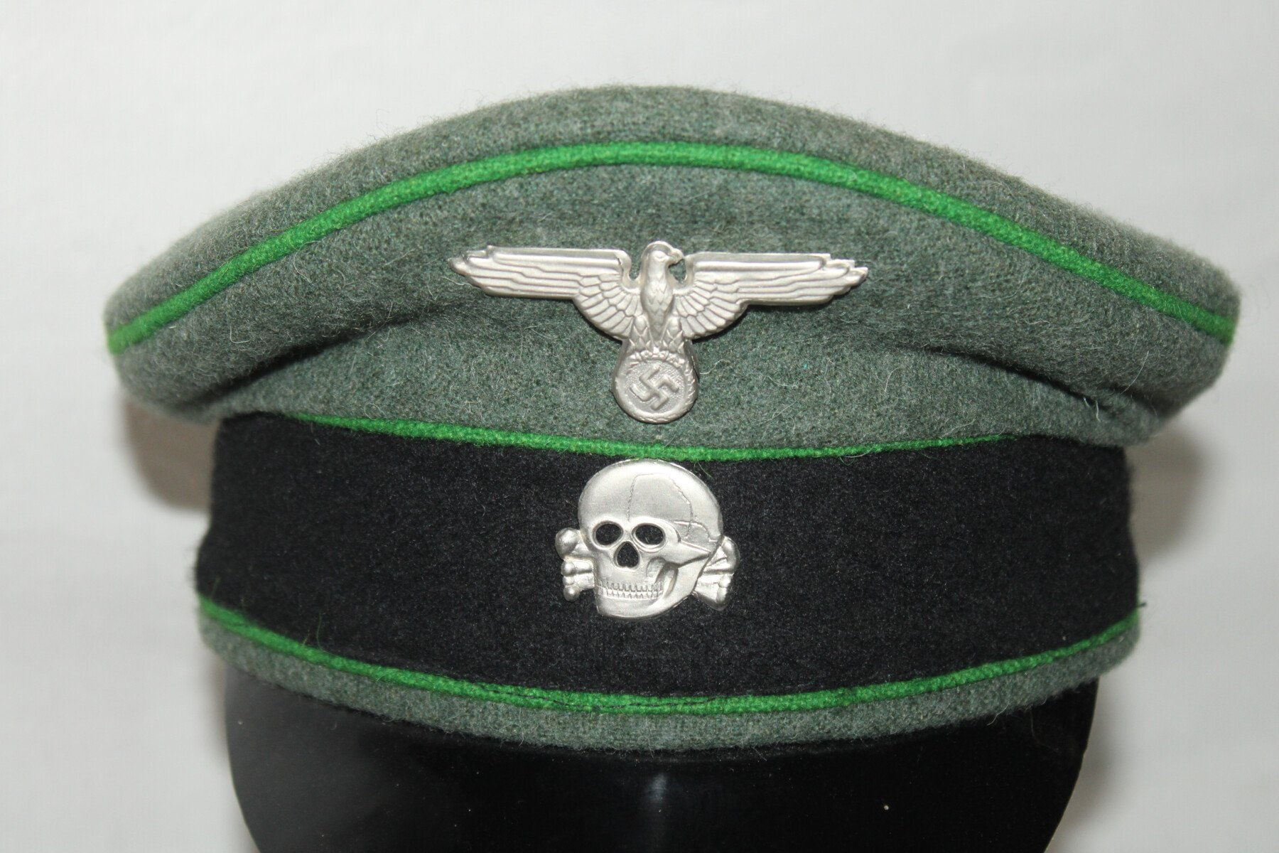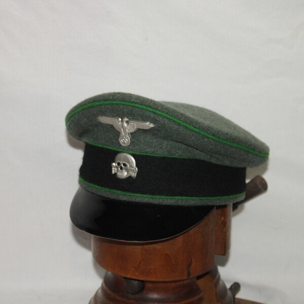 Casquette en drap de la Waffen-SS, taille 60. Liseré vert. Pas de boutons ni de jugulaire.