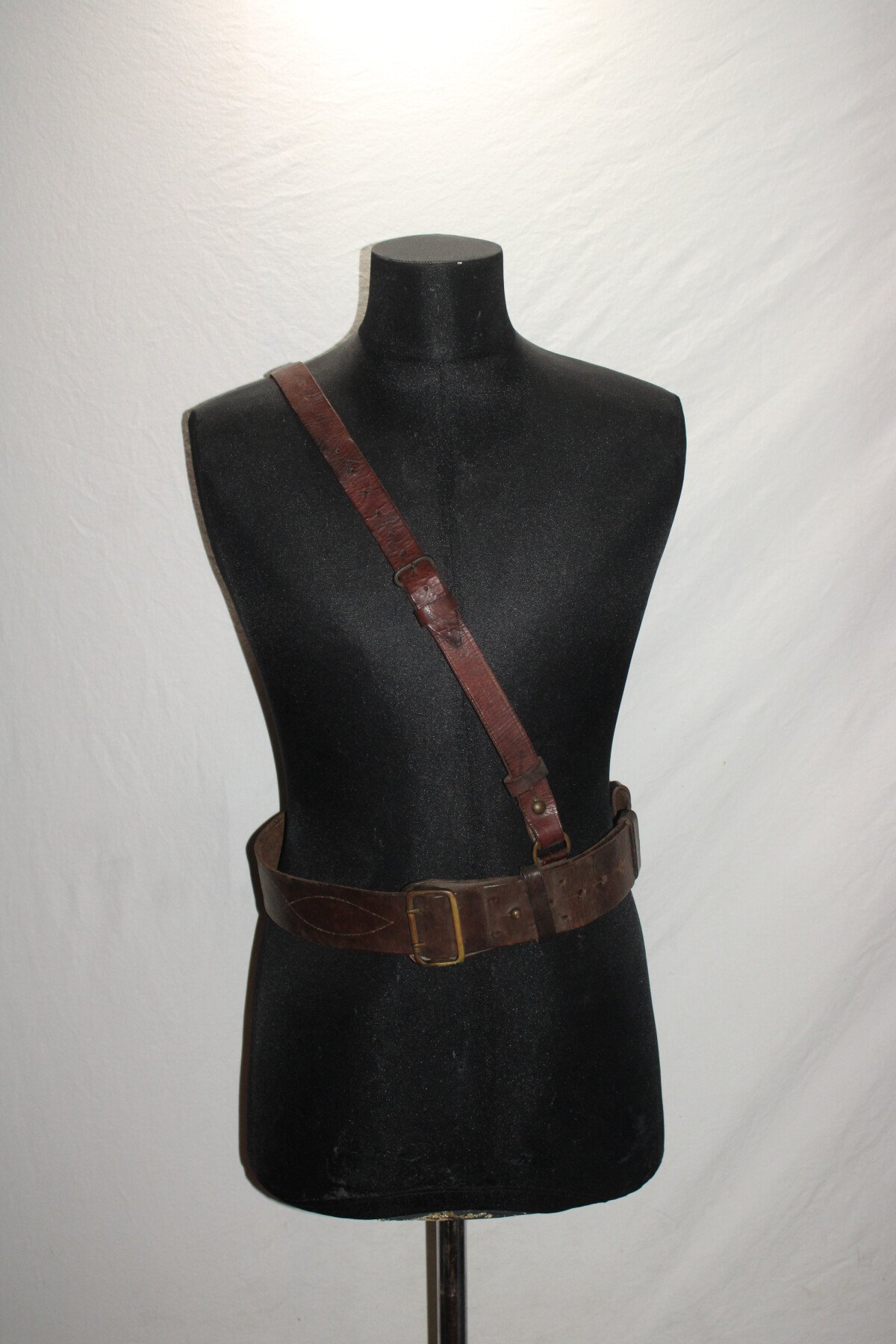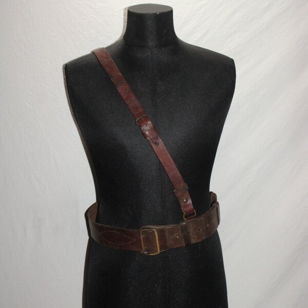Ceinturon pour officier avec son baudrier, cuir en très bon état. Longueur 110cm.