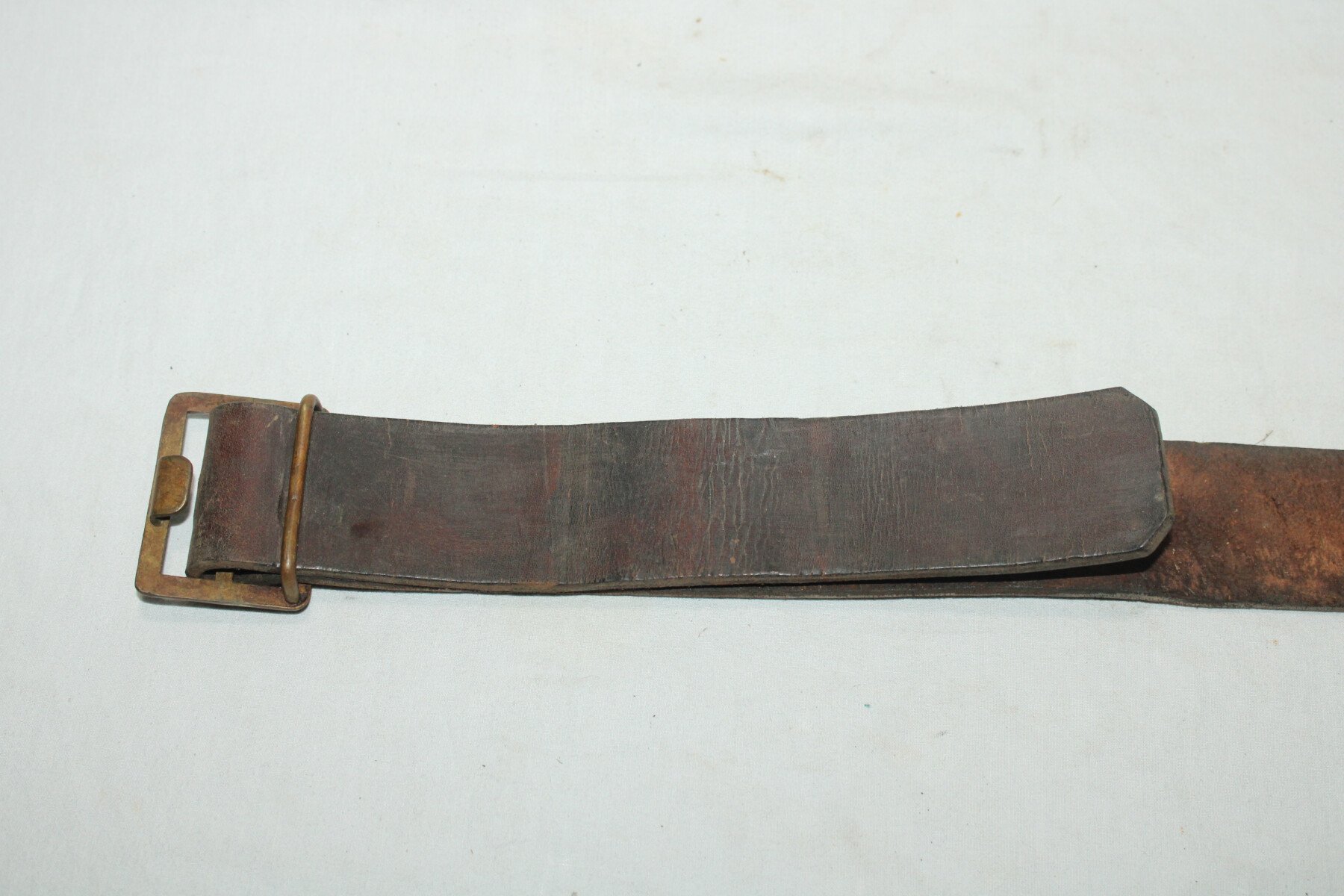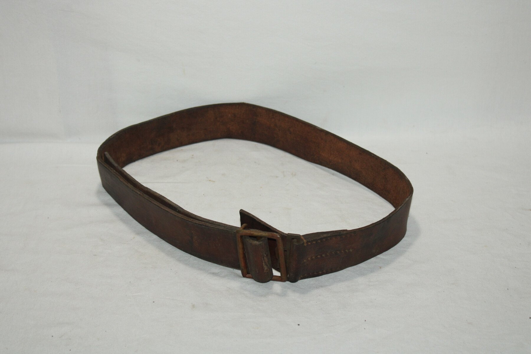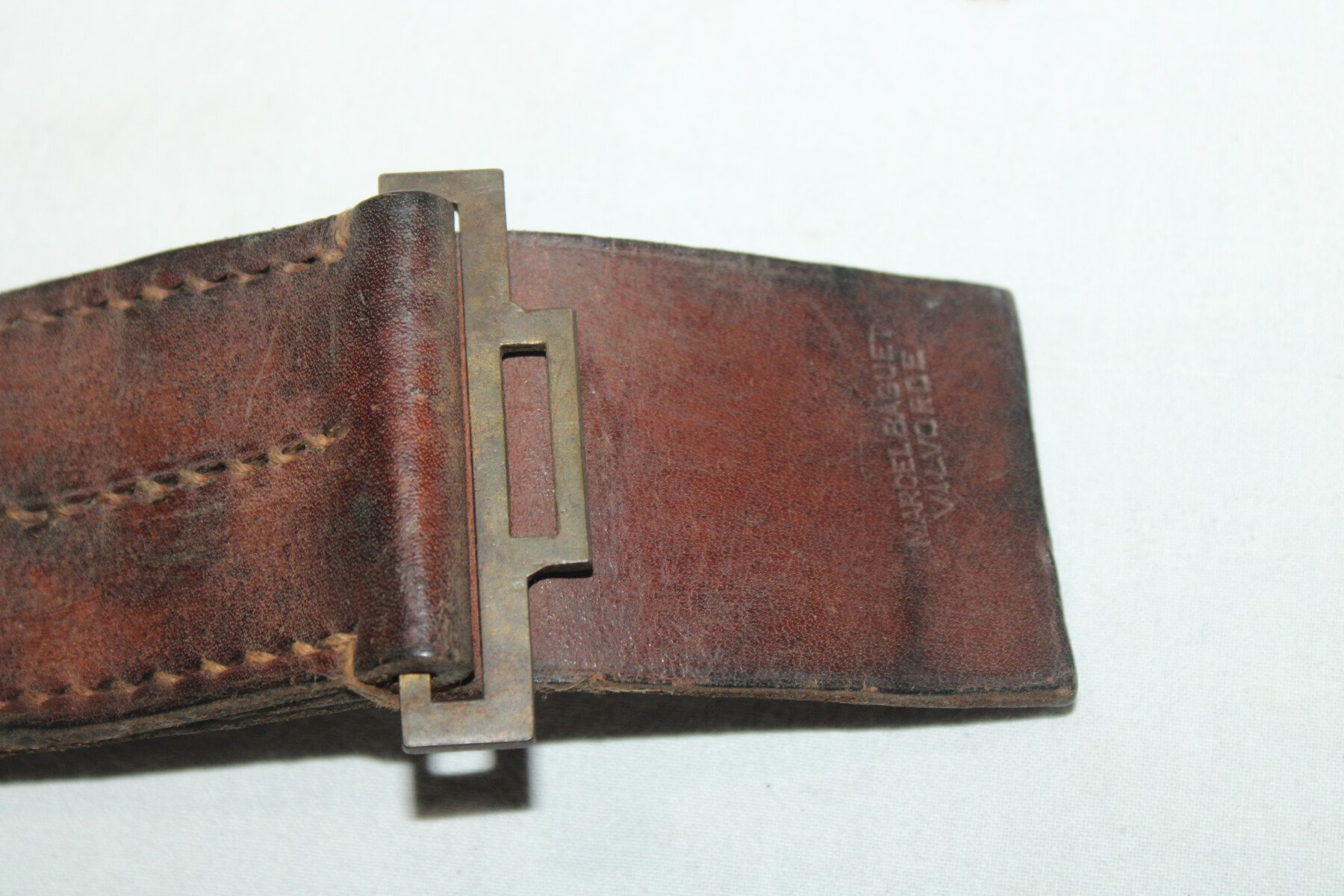 Ceinturon troupe belge en cuir fauve. Tampon de fabricant Marcel Baguet Vilvorde. Cuir à nourrir. Non recoupé.